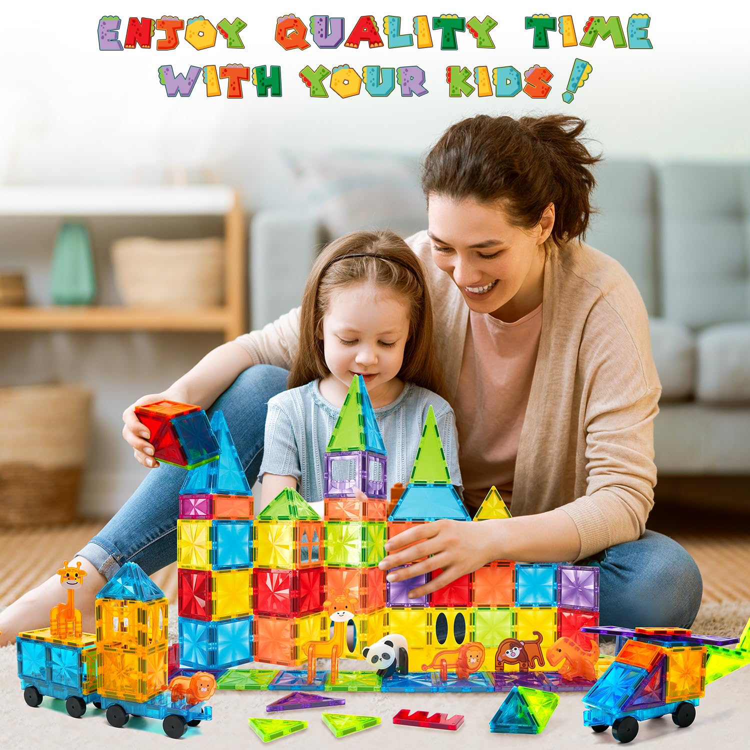 Perfect Gift for Boys and Girls: The magnetic blocks in beautiful packaging are a wonderful gift for birthdays and other occasions. A good gift for 3+ year old boys and girls. Don't hesitate! Even teenagers can have fun with it. Play with your family, this set of magnetic blocks can keep children happy for hours!"