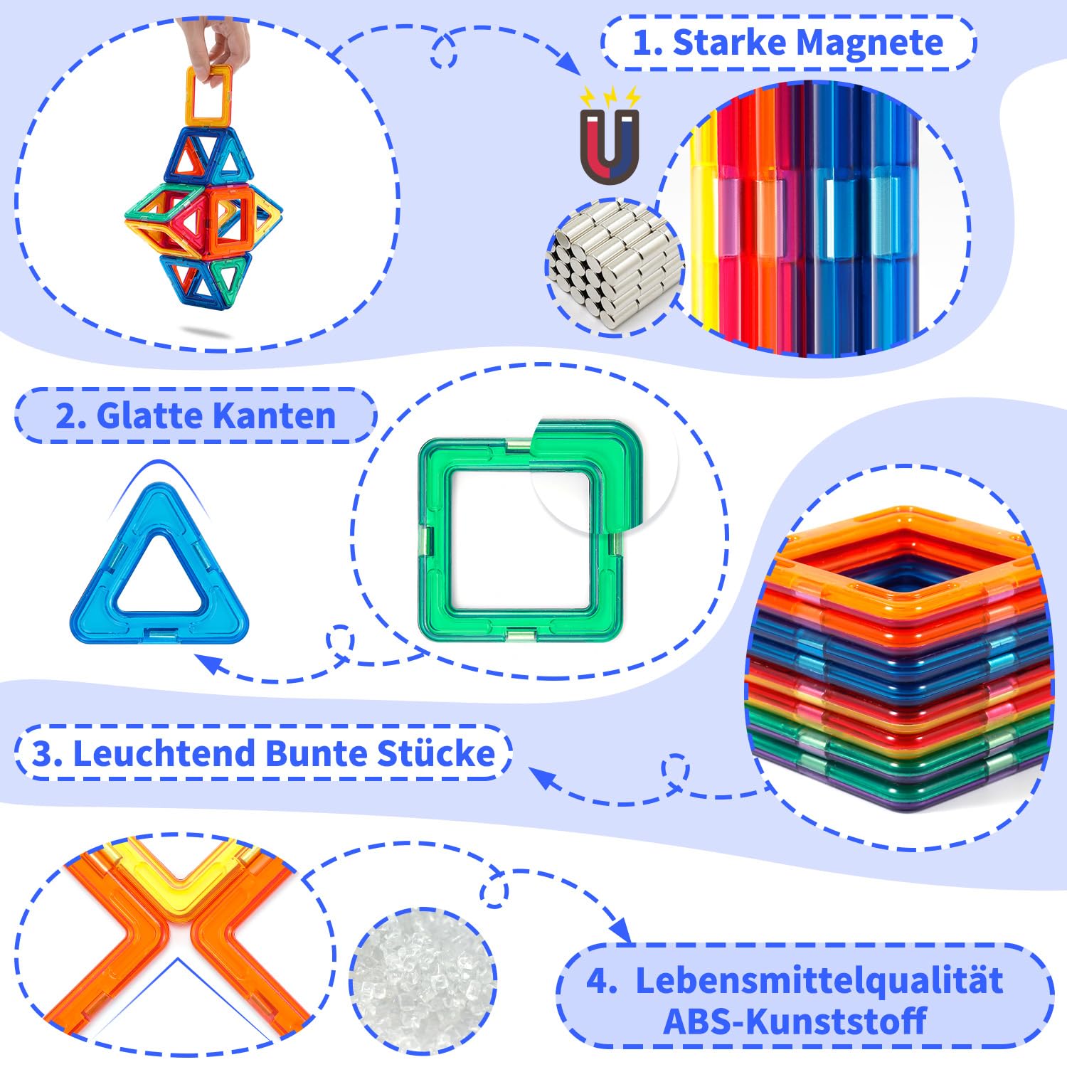["【Certified High Quality】Magnetic building blocks are made of smooth, high-quality, non-toxic ABS plastic. Round edge design without sharpness, no worries about injuring your child's small hands. Perfect toy for boys and girls aged 3 4 5 6 7 8 years old.",