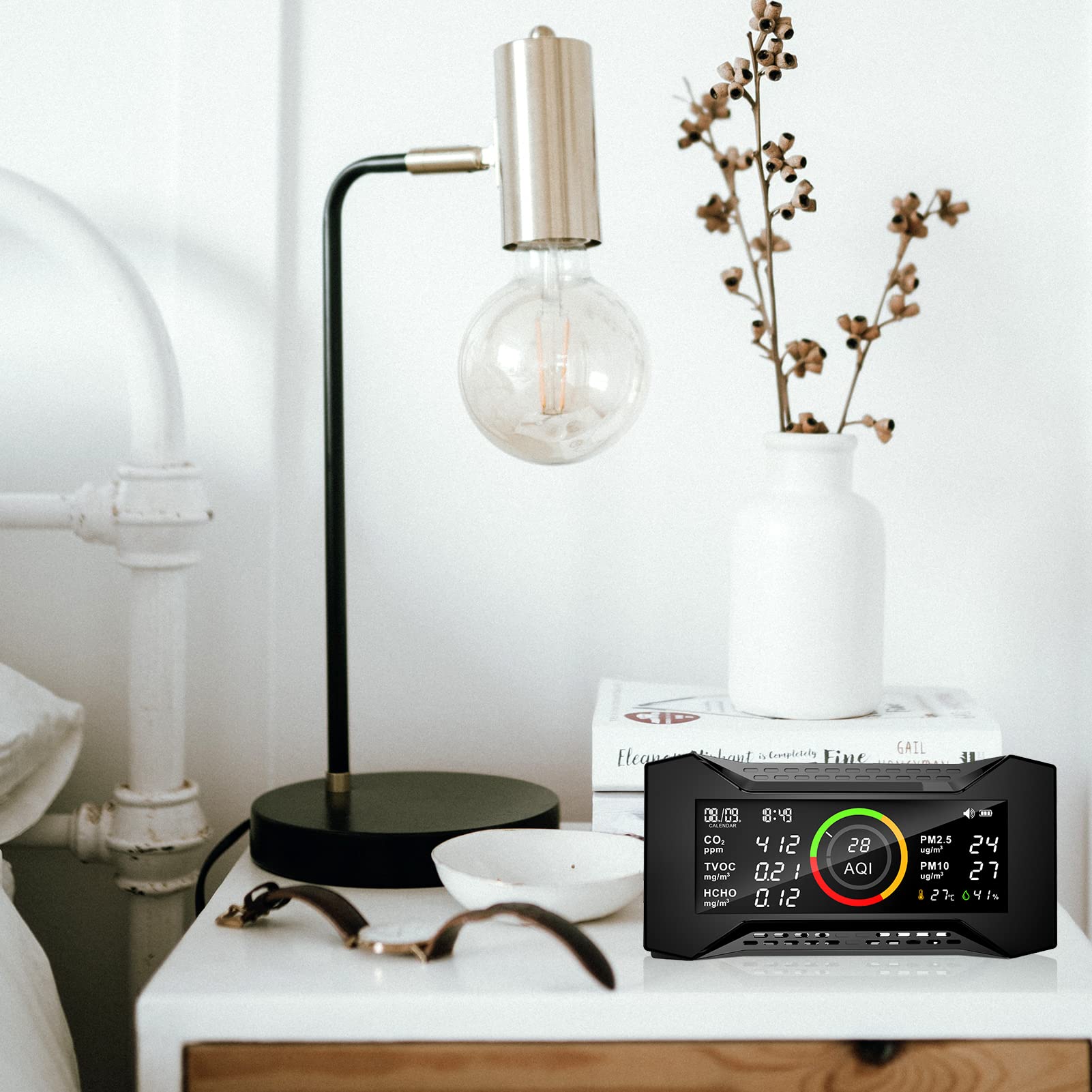 đăALL-IN-ONE AIR QUALITY MONITORăOur multifunctional indoor air quality monitor detects Carbon Dioxide (CO2), Volatile Organic Compounds (VOC), Fine Particulate Matter (PM 2.5 & 10), Formaldehyde (HCHO), Temperature, and Humidity. With this detector.