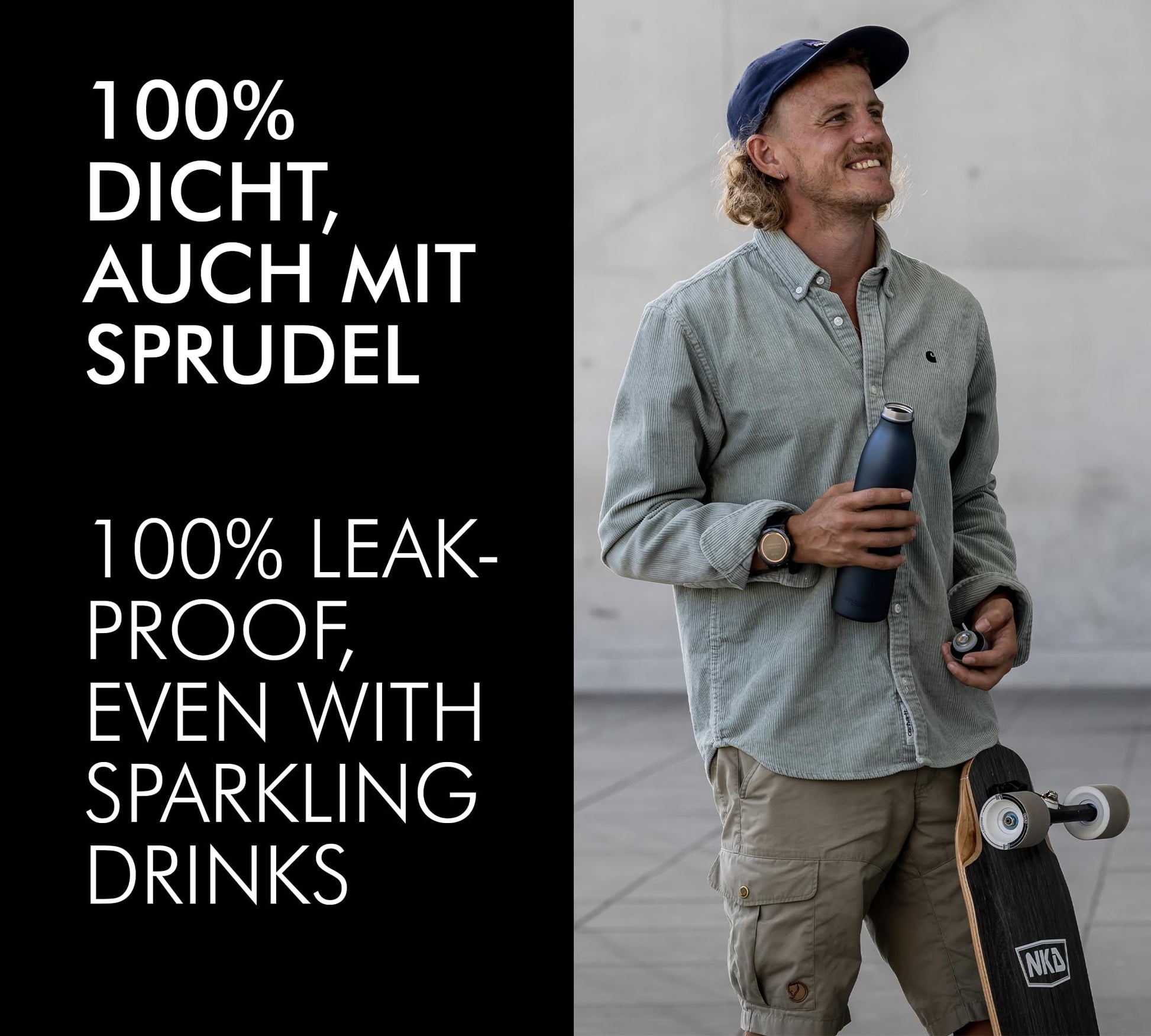 100% LEAK-PROOF: even with carbonation! No more leaks with Thermos' stainless steel water bottle. Enjoy a refreshing drink without worries. And no compromises when packing – let's go!
