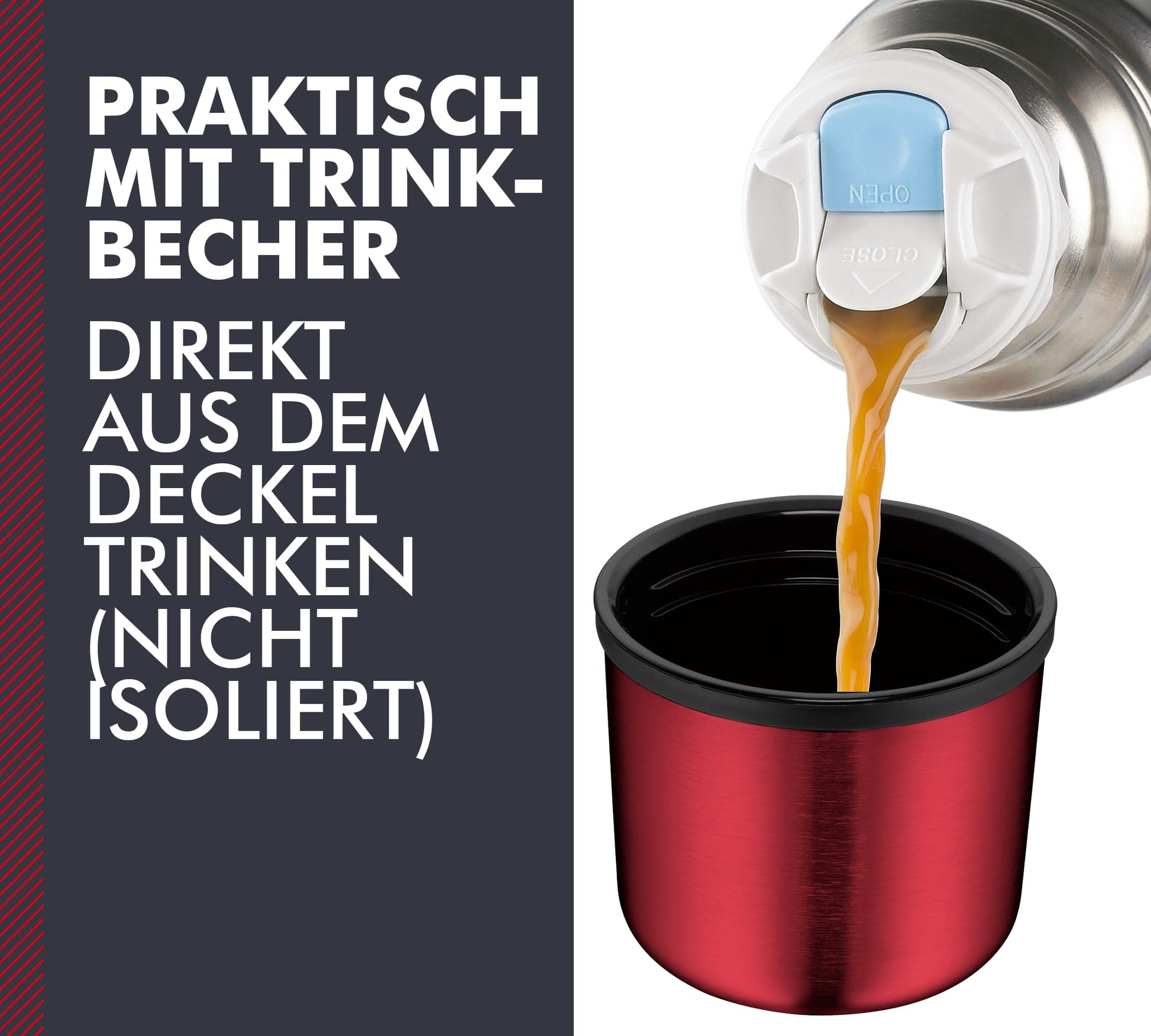 THERMOS LIGHT & COMPACT BEVERAGE BOTTLE 1L, cranberry red, stainless steel thermos bottle, red with drinking cup, 24h hot / 24h cold, dishwasher safe, absolutely leak-proof, BPA-free.