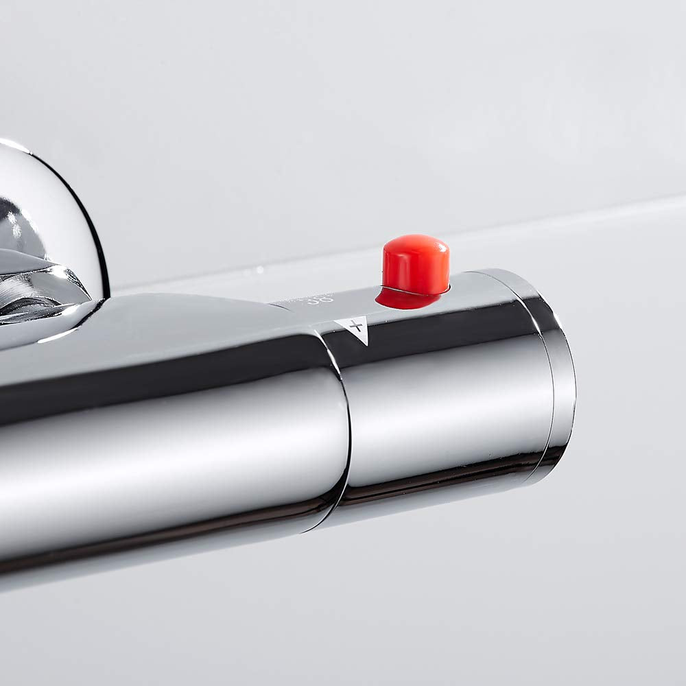 "The water temperature is constant and the temperature can be avoided too high or too low. Protect yourself and your families with the 100.4°F safety button from too hot water. The Thermostat valve is suitable for the European standard and the rain shower outlet is G 3/4, the shower outlet is G 1/2. The valve is made of chrome-plated brass, which is corrosion-resistant, moisture-proof, heat-insulating, non-rusting, durable, shiny and eliminates oxidation problems. With this shower valve, water can reach the desired temperature in less than a second and remains constant throughout the shower. This thermostat cannot work if there is only old or hot water. 3 years warranty upon sale. Any questions, please contact us."