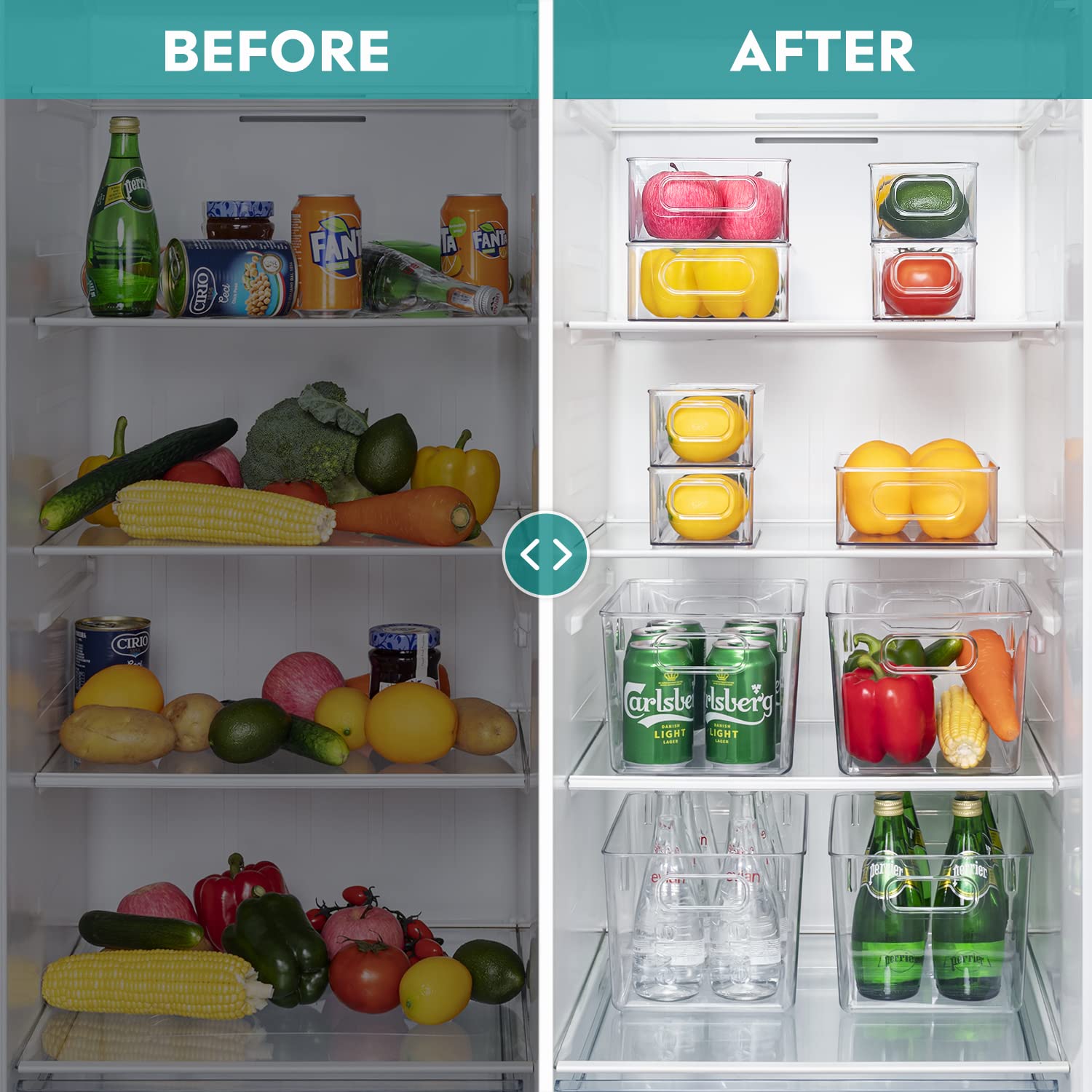 THLEITE Refrigerator Organizer 12 Piece Set (4 Upgraded Large/4 Medium/4 Small), Pantry Storage Containers, Transparent Storage Box, perfect for Kitchen, Fridge, Cabinets - BPA Free