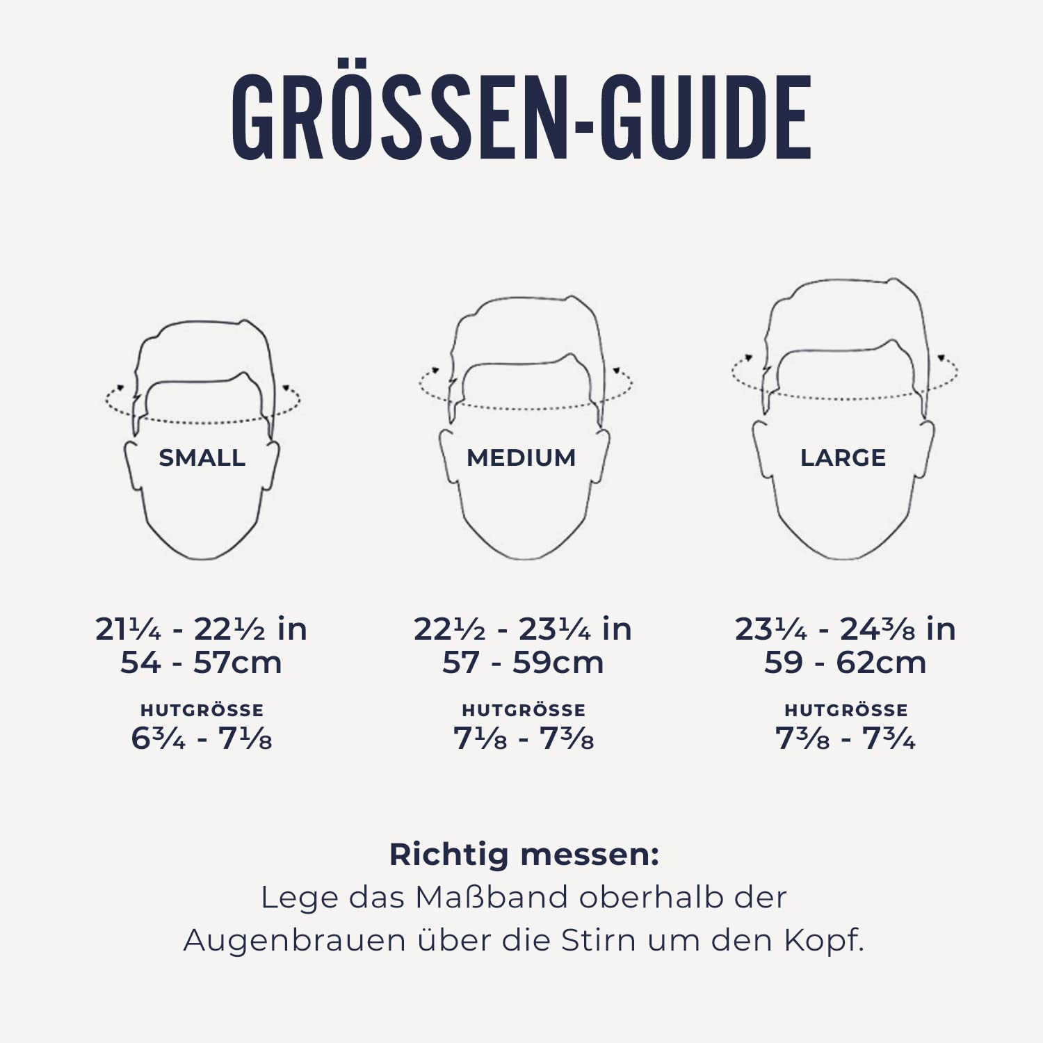 "Sizes: S (21.25–22.44 in), M (22.44–23.22 in), L (23.22–24.40 in)"