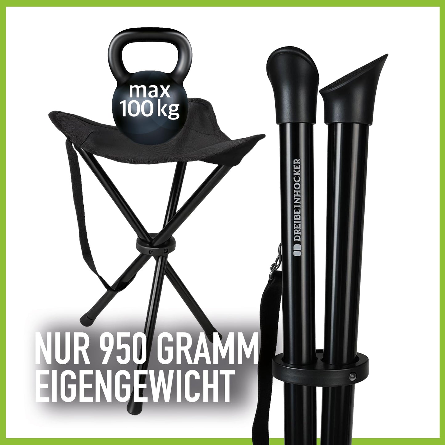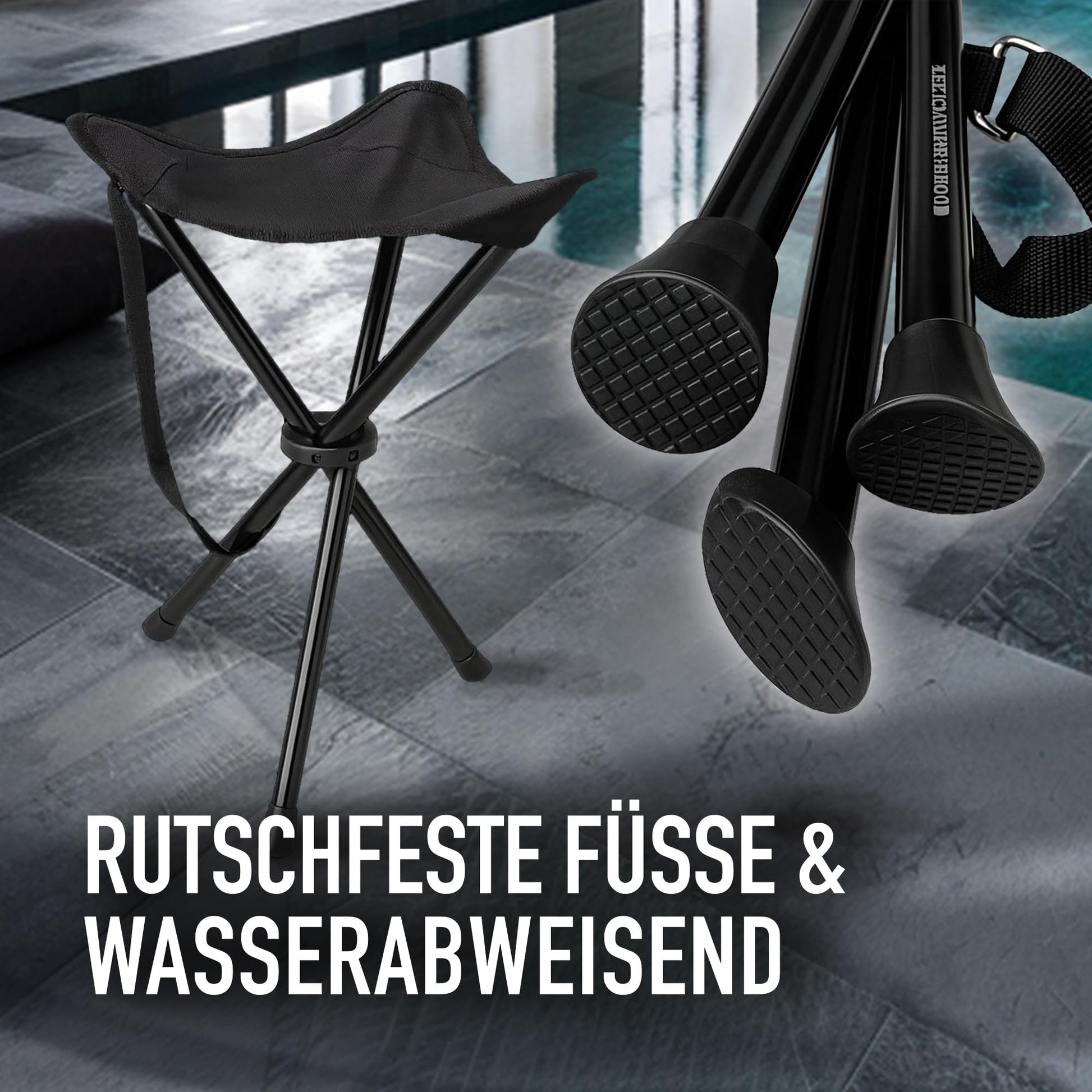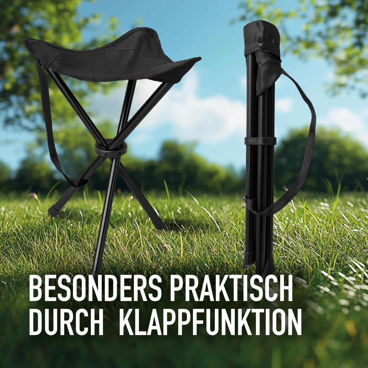 ["Ultralight & portable - only 1.21 lbs! The three-legged stool weighs a featherlight 1.21 pounds and can be easily carried in one hand or attached to a backpack. Ideal for on the go - whether it's a festival, trade show, campground, or fishing trip.","Festival-Ready: Compact & comfortable! With a seat height of 15.75 inches and 11.81 inches wide, the stool provides a stable and comfortable seating option. Quickly unfolded, it fits perfectly for long days full of music, people, and experiences.","Multitalent for everyday & leisure Whether in long lines at events, as a replacement chair at trade shows, or as an outdoor companion for fishing - this folding stool is your clever seat to take with you. Never stand again where you can comfortably sit!","Stable & load-bearing up to 220 lbs The sturdy 3-leg construction ensures a secure stance even on uneven ground. The resilient seat surface can support up to 220 lbs - reliable and durable for any occasion.","Fits in any bag - always within reach! When folded, the stool measures only about 15.75 x 2.36 inches and fits effortlessly in a backpack, suitcase, or sports bag. A must-have for those who are often on the go and appreciate comfort."]