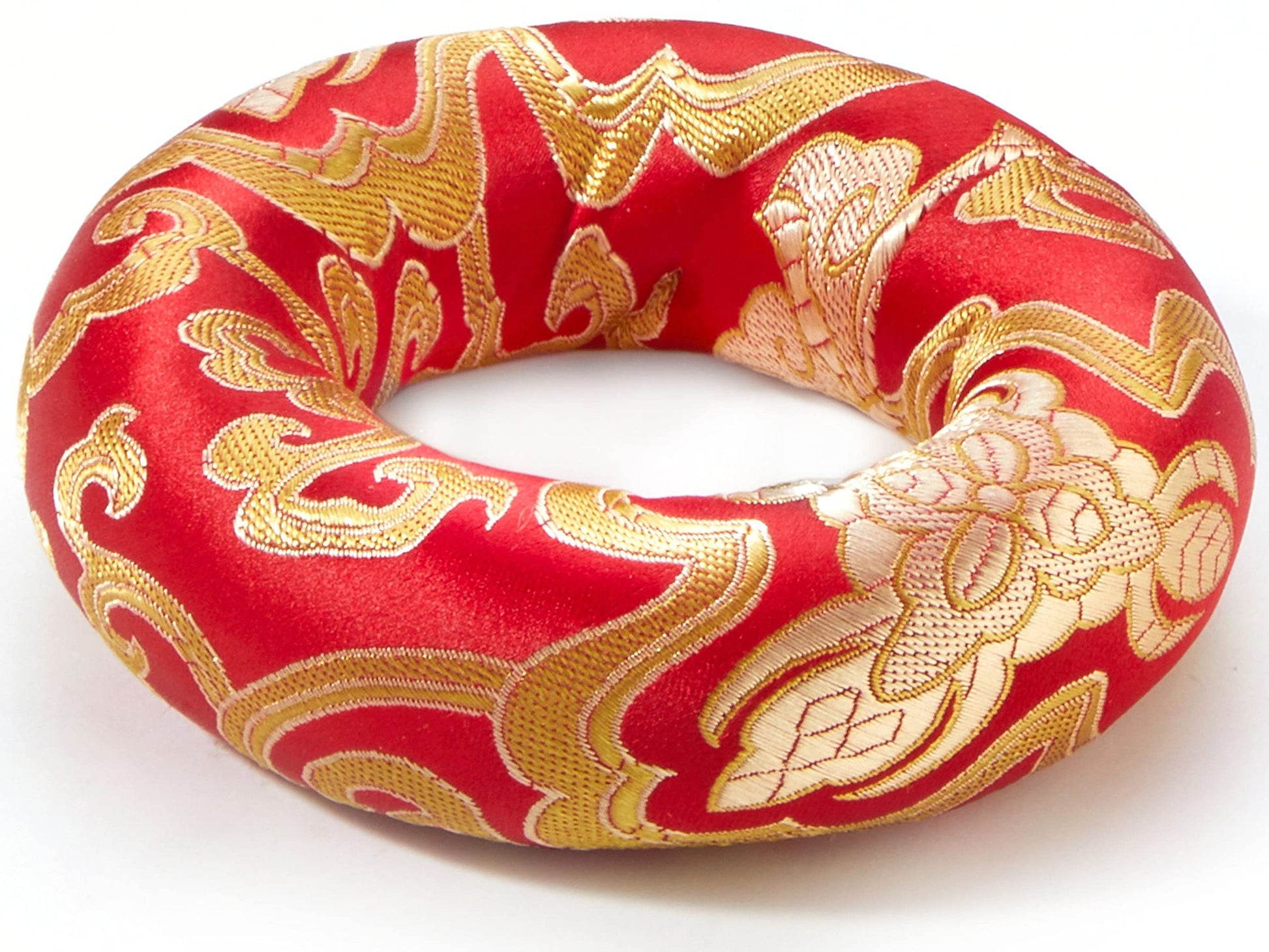 ["TIBETAN SINGING BOWL SET: Yoga singing bowl 4.5 inches (outer diameter) and very solid, wooden striker, decorative ring cushion, and a wonderful gift box made of Lokta paper handcrafted in Nepal,"]