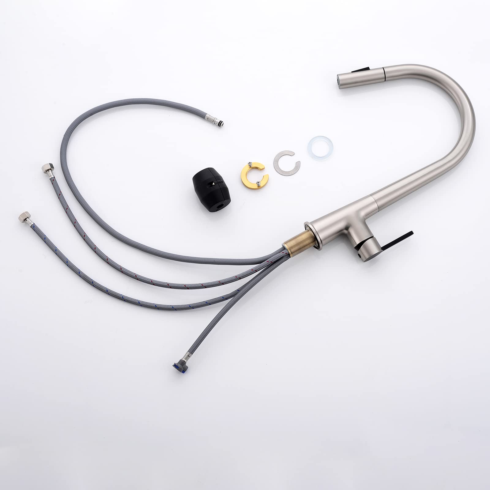 "【Easy to install】 --- We have pre-installed the hoses and water supply hose in the kitchen faucet to save a lot of time under the sink.",