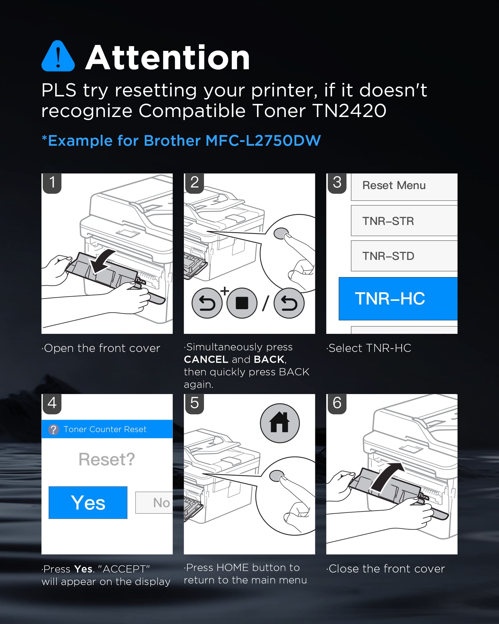 "❣ 【Package Contents】2 black TN-2420 toner cartridge (non-original) with latest chip.",