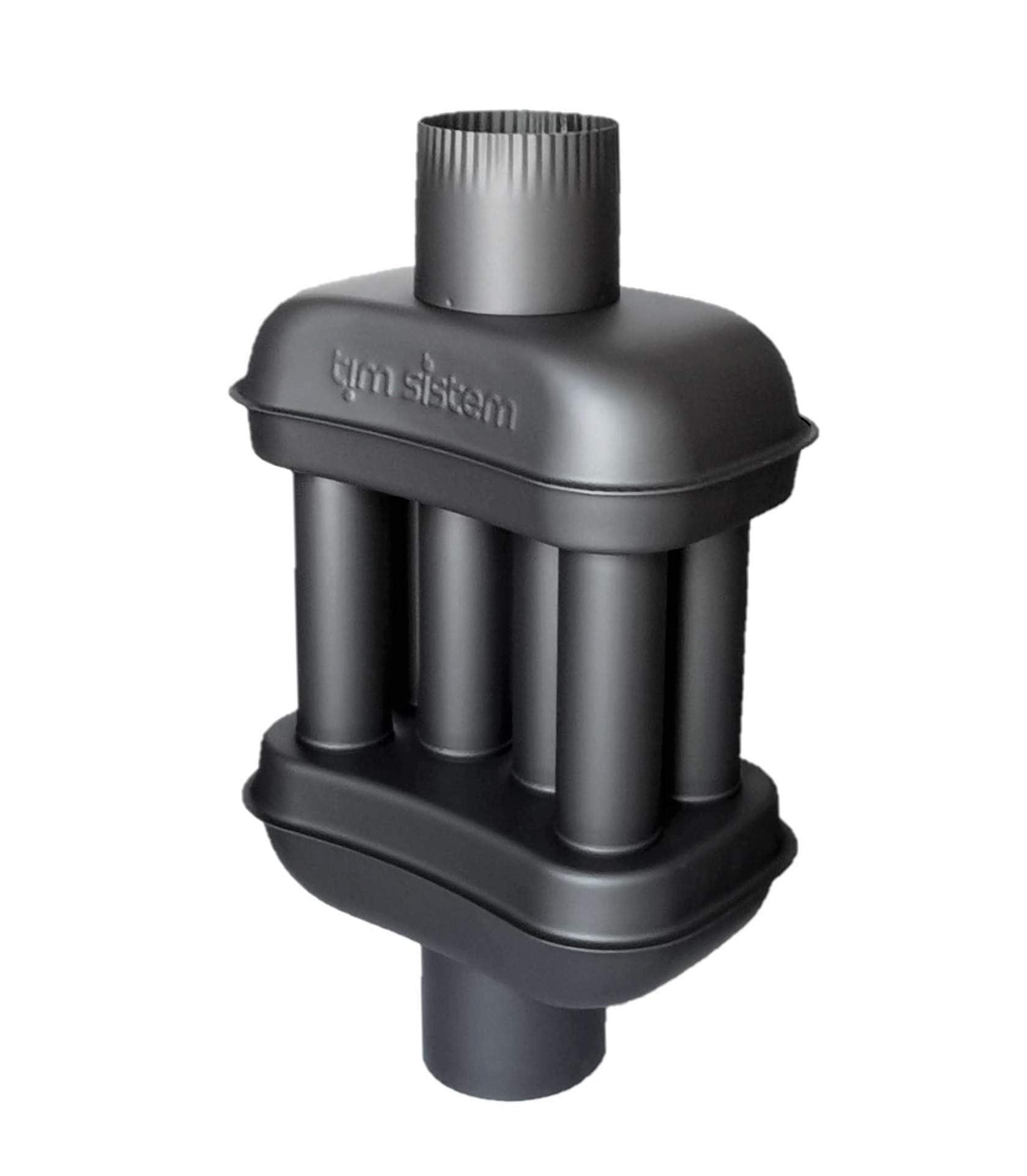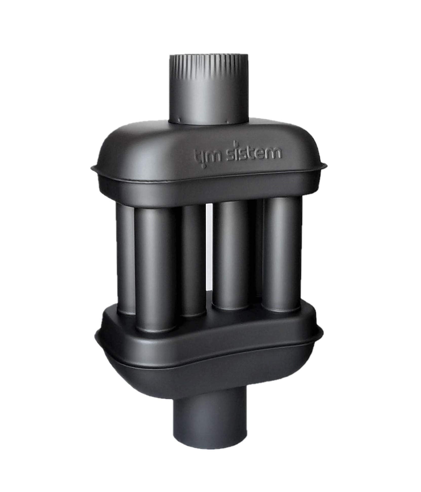 ["Flue pipe diameter: 4.72 inches; Length: 23.62 inches; Channels: 6", "The exhaust heat of your stove is efficiently transferred to the room air through the large surface area of the channels without significantly affecting the chimney draft. Simply insert the heat exchanger between the existing exhaust pipes for this purpose.", "Suitable for use with coal and wood. Suitable for stoves, fireplaces, wood boilers, and wood gasifiers. Pipe is simply inserted between the existing exhaust pipes of the stove. Easy cleaning prevents constant repurchase. Easy installation with standardized connection sockets. High-quality appearance matching most stove pipes. Order now our robust heat exchanger and save money by reducing the use of heating energy!", "This product has a CE certificate"]