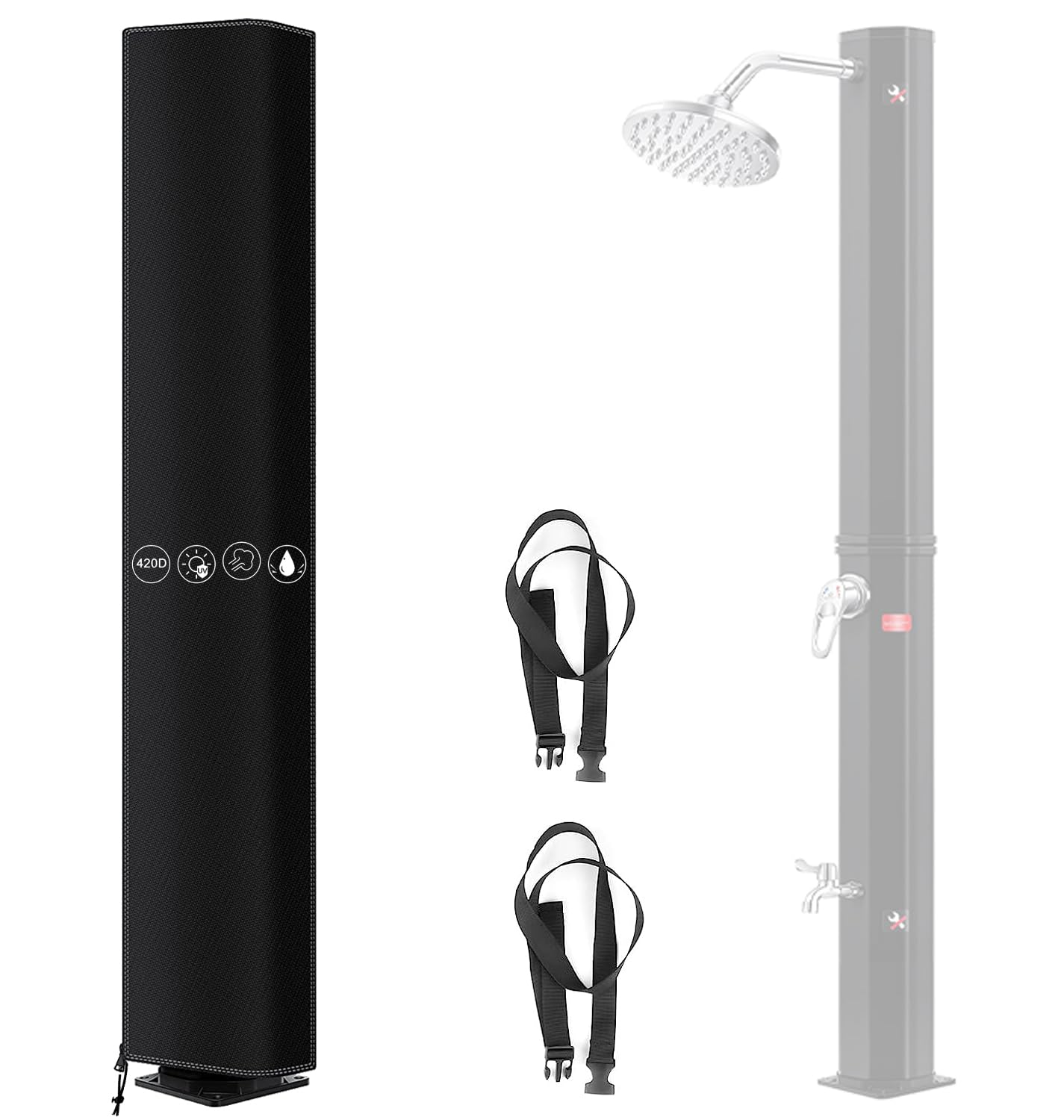 ["Professional Waterproof Design - Outdoor shower covers are made of high-density 600D Oxford fabric on the outside and coated on the inside with an eco-friendly, high-quality, waterproof 7P PU coating. Compared to Oxford fabric 420D/210D, it provides better protection against water, rain, and UV rays. Seams are sealed with high temperature and most importantly we have waterproof adhesive strips! Effectively prevent water from seeping into the outdoor showers.","Enhanced Triple Fastening Function - To protect your solar shower in bad weather, we have designed a windproof triple closure system: 2 adjustable snap buttons + 1 zipper + 1 reinforced drawstring. You can easily adjust the tightness. These designs are well crafted to provide effective wind and tear resistance and give your outdoor showers the best protection.","Many Sizes & Widely Used - Dimensions: 230x67cm, 220x67cm (LxH) LAMETTA offers solar shower covers in 2 sizes, giving you a variety of options. ►Note: Please measure your outdoor showers and choose a suitable size before purchasing.","Easy to Clean and Store - Outdoor shower covers are dirt-resistant and easy to clean. Our solar shower covers are made of spun-dyed, woven polyester and polyurethane, good UV resistance so you can spray them off and dry them in the sun without worrying about fading. We come with a zippered storage bag for easy transport and storage when not in use.","Our Commitment - is committed to providing our customers with a lifetime warranty and 24/7 service. Please check the product and packaging when you receive the product. At LAMETTA, we focus on product quality and place great importance on our customers' shopping experience. If you have any questions about our products, feel free to contact us."]