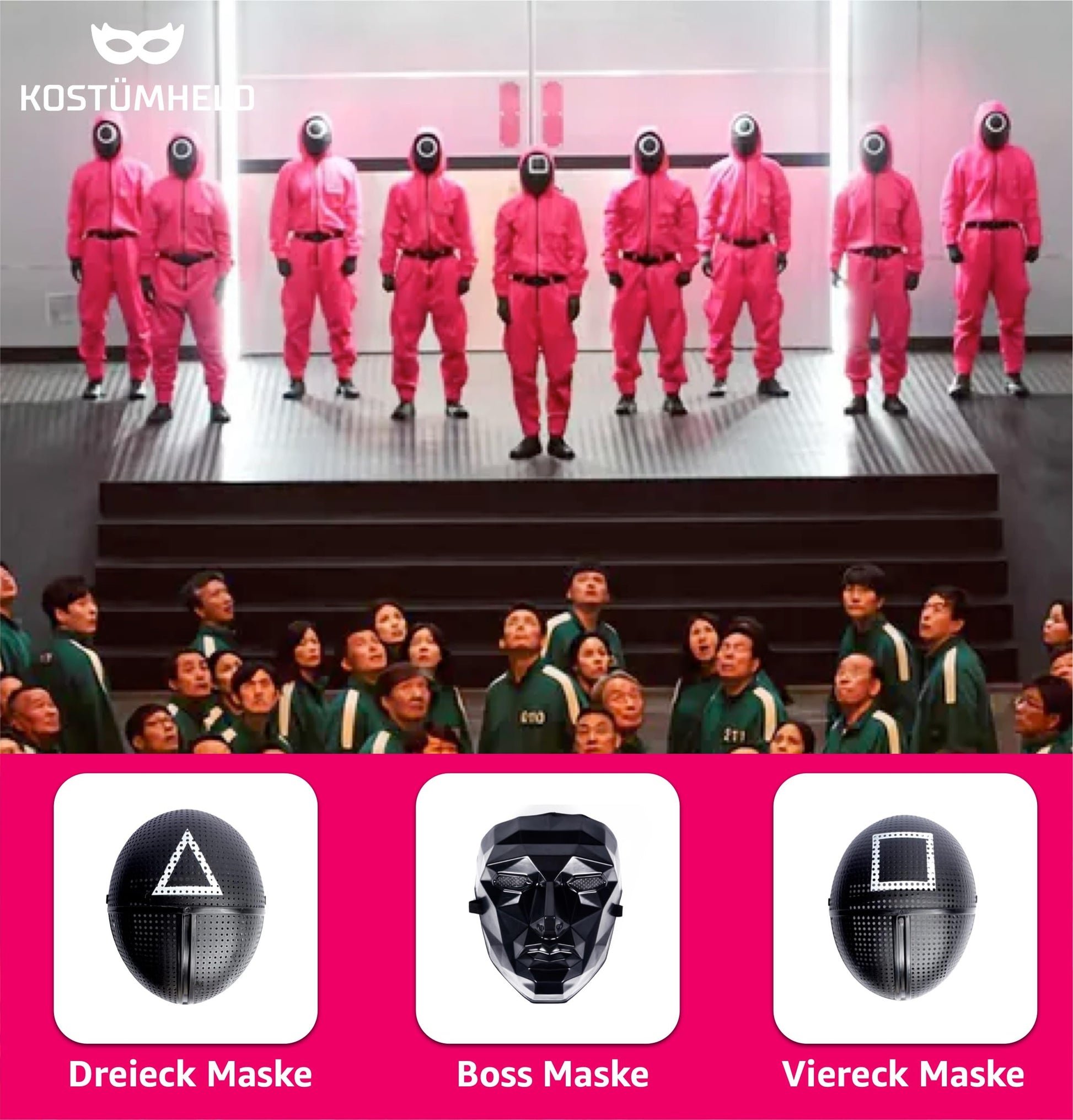 ["High-quality spooky mask with guarantee for all Halloween fans -","Halloween is a great time of year to get creative and have fun! And what better way to do that than with a homemade squid costume? Here are 5 creative ideas for squid costumes that will make you the talk of the Halloween carnival or costume party.","Red Light - Green Light Game","Perfectly matching with red cape - Villain mask - or 067 triangle, square or circle mask","Perfect for Halloween or carnival for men & women - Suitable for men and women as a mask for costumes at Halloween","Looking to make a stylish statement at Halloween, carnival, or any other special occasion? Then the 5x Foursquare The Game Squid Mask Foursquare is the perfect costume for you! This creative and attention-grabbing mask is suitable for both men and women and adds a touch of fun to any occasion.","The 5x Foursquare The Game Squid Mask Foursquare is not only stylish but also comfortable. Thanks to its lightweight construction, it doesn't feel heavy on the face even after hours of wear. And you don't have to worry about skin irritations either, as the mask is made of high-quality materials that gently hug your skin.","Adds a touch of flair to any costume or event outfit. It's not just a great accessory for Halloween or carnival, but can also be worn as part of everyday streetwear or used as a conversation starter at parties and other social occasions.","The secret behind the popularity of this mask is its eye-catching design that stands out wherever you go. It looks especially good when paired with bold patterns or accessories like earrings, bracelets, and necklaces. Get your mask now before it sells out!"]