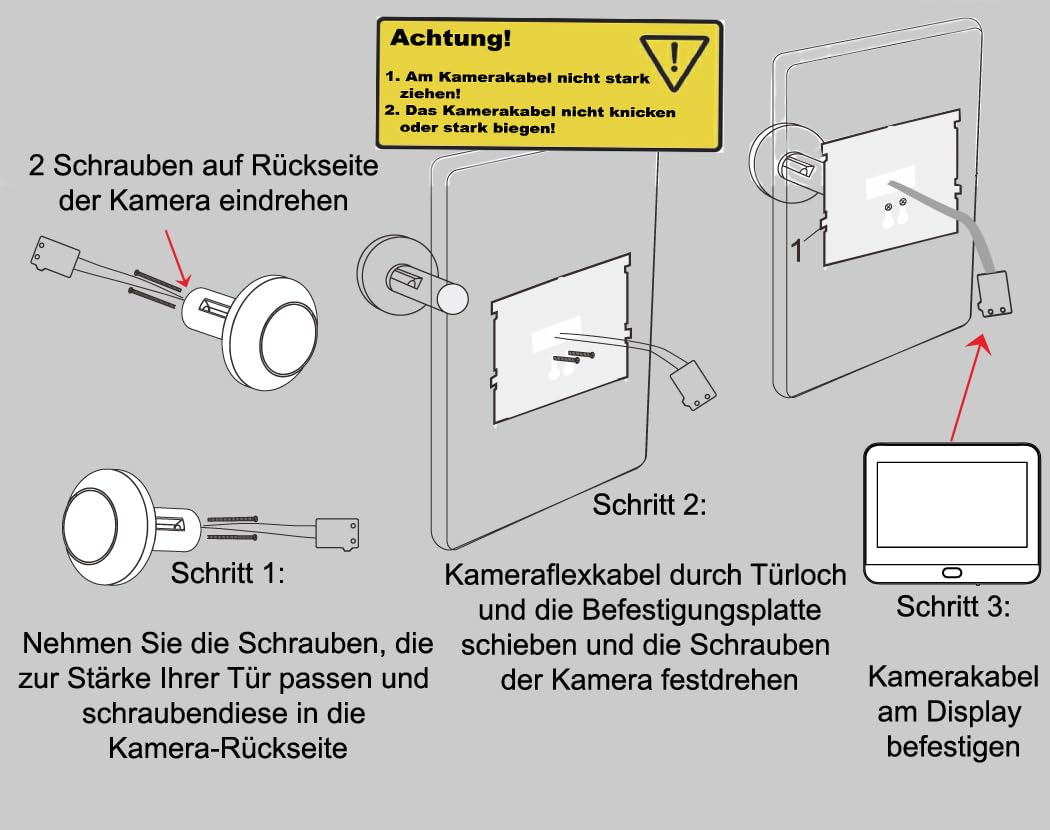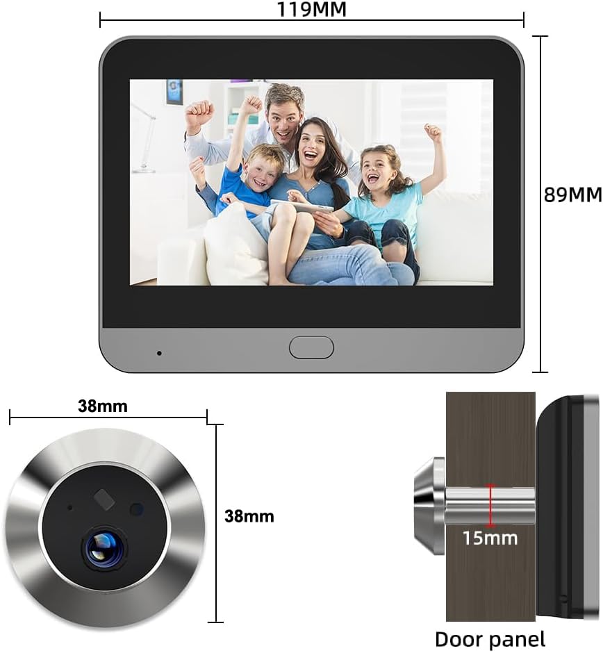 Easy to install and easy to install: The door peephole camera is suitable for door thicknesses of 35-115mm. And the hole opening for the door peephole camera must be at least 14mm. Video installation instructions are included as a QR code in the user manual.