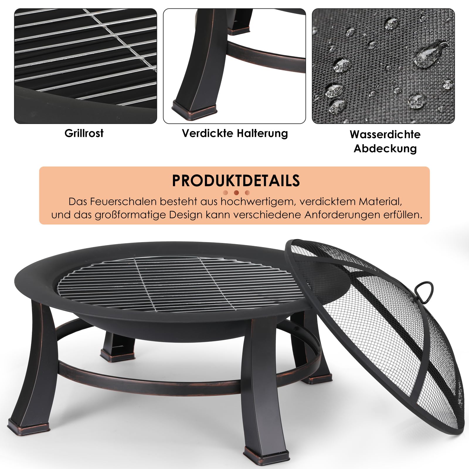 🔥STABIL AND SECURE: The fire pit for the garden is made of sturdy and heat-resistant iron, providing high stability and safety for grilling or heating.