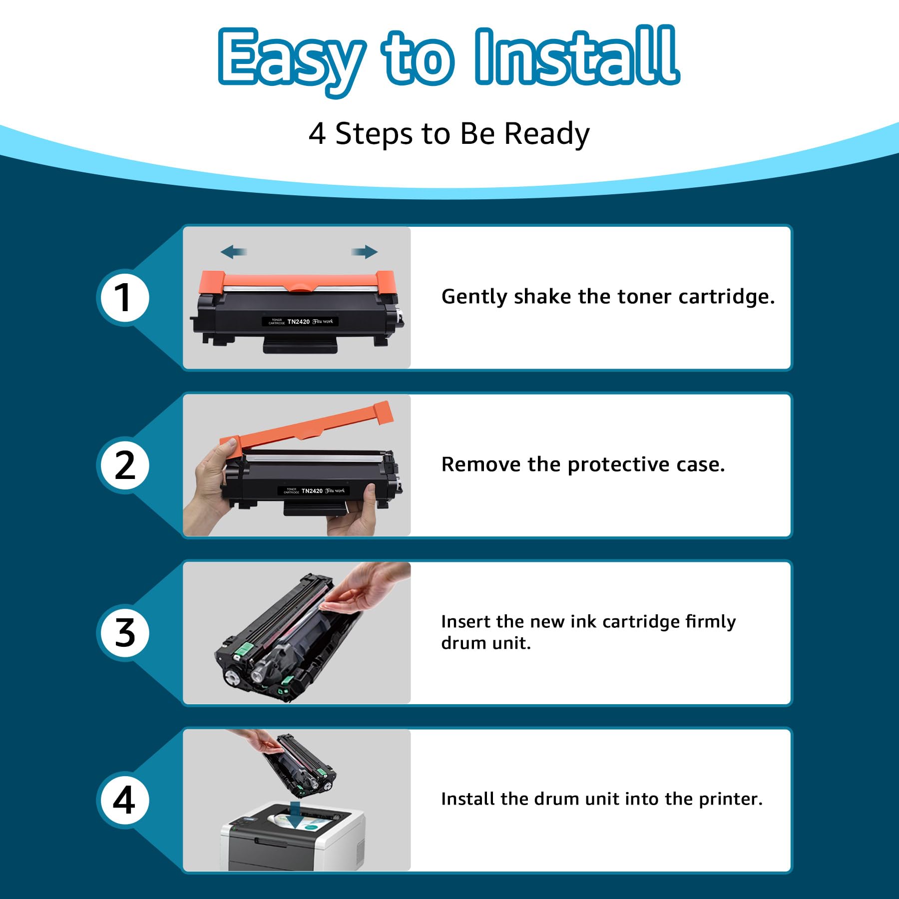 "High page yield: 3,000 pages per brother tn2420 black toner at 5% coverage on A4. Page yield depends on print coverage. We are committed to providing cost-effective replacement toner cartridges that are cheaper than Brother's original products."