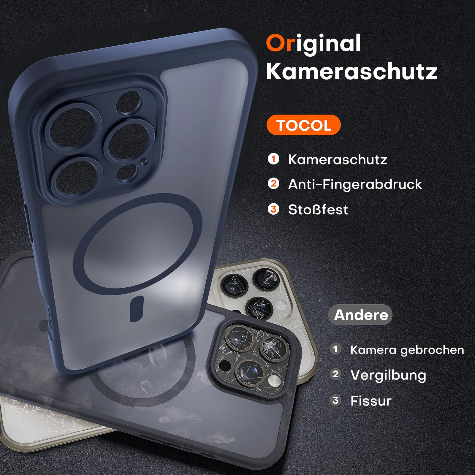 ["Magnetic case for iPhone 16 Pro 6.3 inch: Compatible with magnetic accessories and wireless charging. Use the TOCOL case for iPhone 16 Pro to easily combine various magnetic accessories like wallet, car mounts, stands, and ring holders.","Seamless integrated camera protection: Our protective case for iPhone 16 Pro comes with a seamlessly integrated camera protection design. The fully encompassing back for the camera and the hollow design for the lenses maximize camera protection while ensuring unaltered image quality.","Screen and case protection: The TOCOL phone case for iPhone 16 Pro features a 2.5mm raised screen frame and a 3-layer shock-absorbing frame, providing 360° integrated protection and a powerful shock absorption system.","Slim, Comfortable Touch: The case for iPhone 16 Pro is high quality matte semi-transparent, allowing you to see the color and logo of the phone. The unique texture design on the side provides a comfortable grip and better slip resistance.","Compatibility & professional support: Only for iPhone 16 Pro 6.3 inch. Contact us for issues with iPhone 16 Pro case. A satisfactory solution for your problem is always available."]
