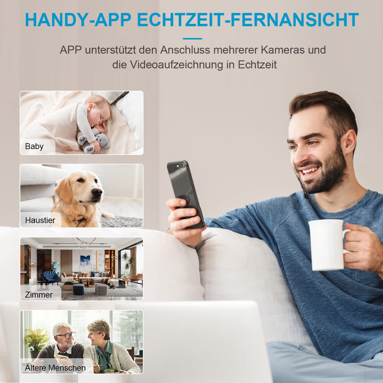 [Video can be shared, care is not missed]: Smartphones can download the app to view images in real-time (the mini camera only supports 2.4GHz Wi-Fi). No matter where you are, you can access the app and watch live recordings. You can use it to secure your home, warehouse, office, shop, backyard, or garden. You can also share your camera with friends and family and enjoy great moments.