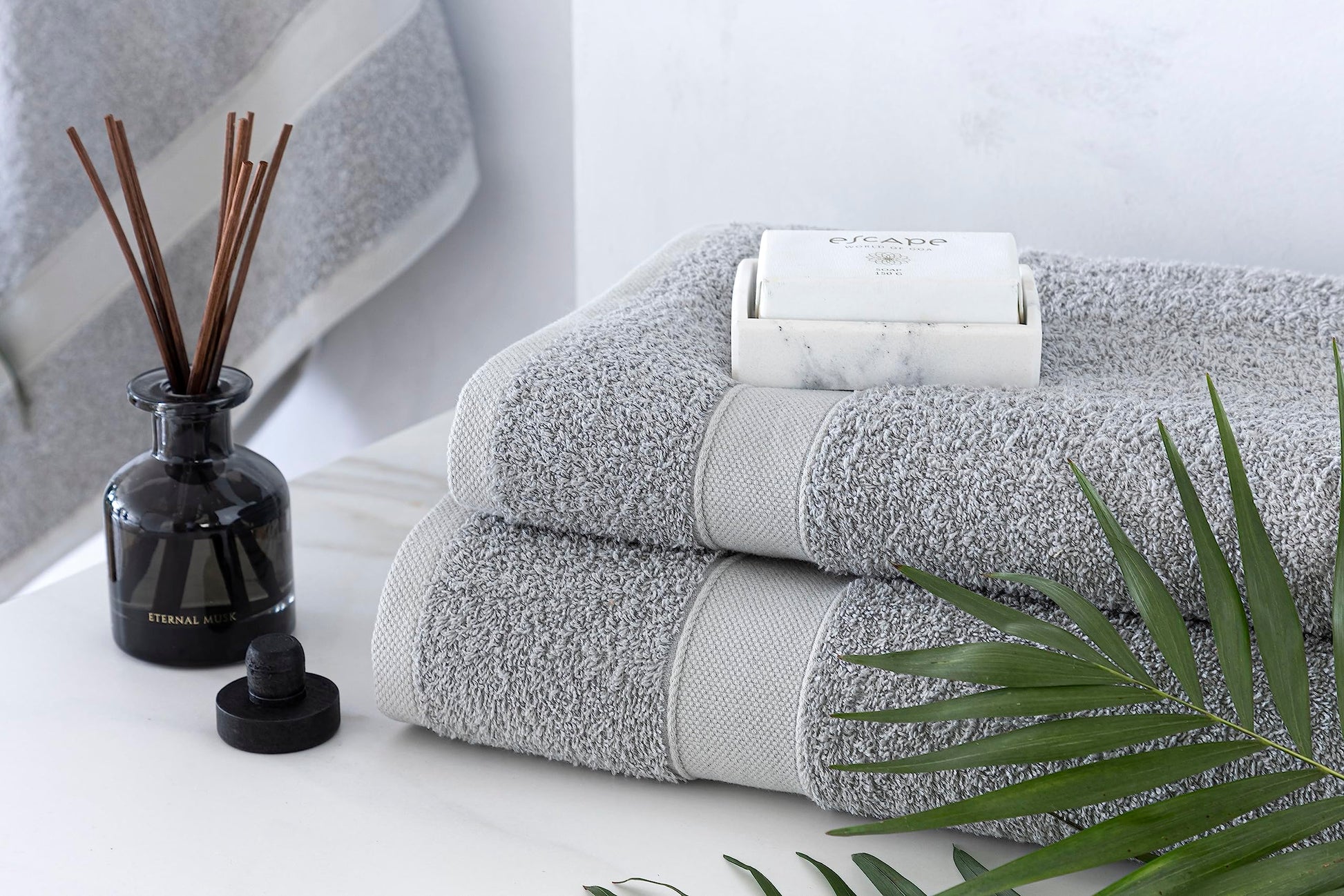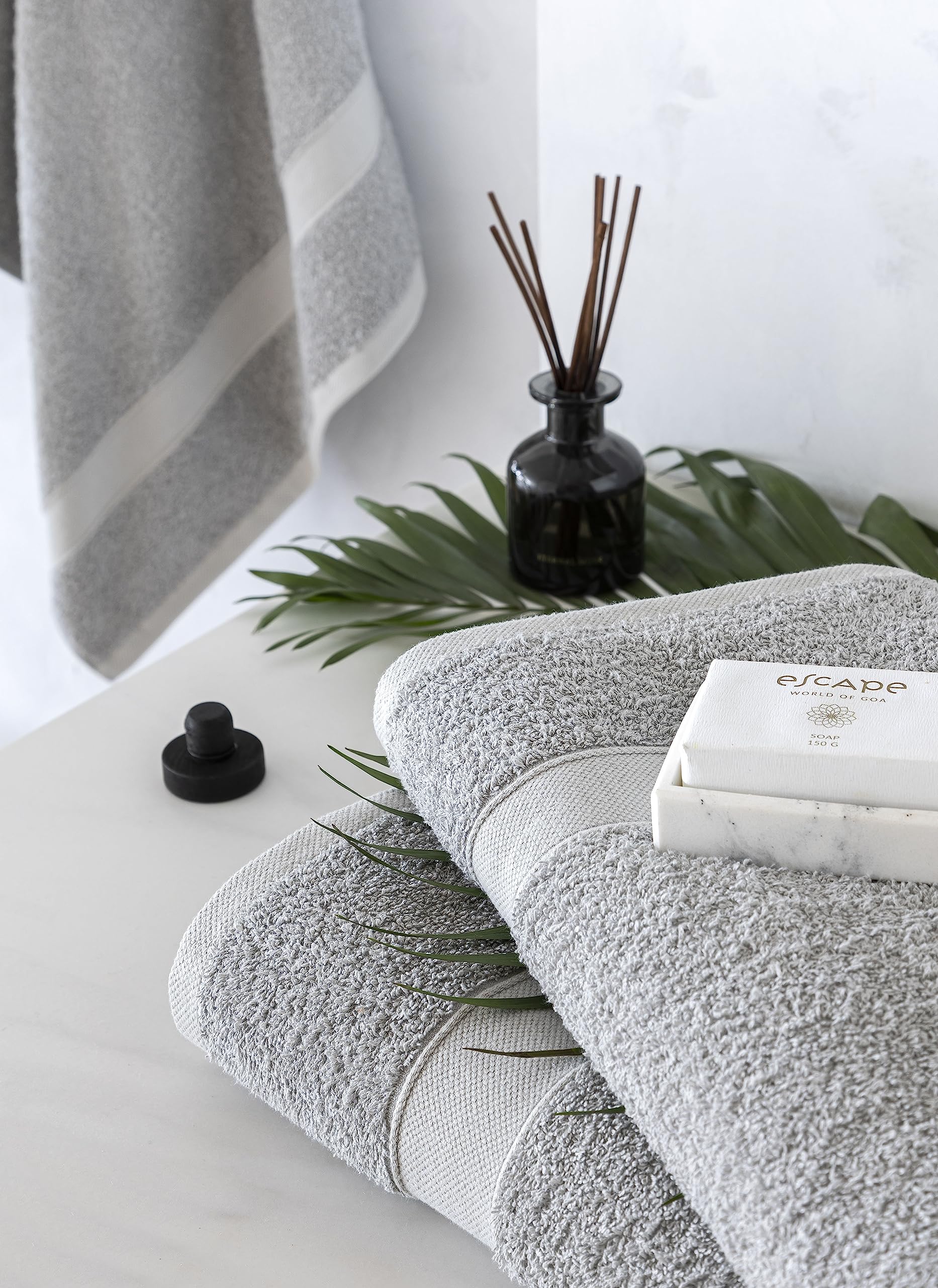 Todocama 2 bath towels, 100% cotton, 550 gsm, extra soft, very absorbent and quick-drying, measures 70 x 140 cm, light grey.