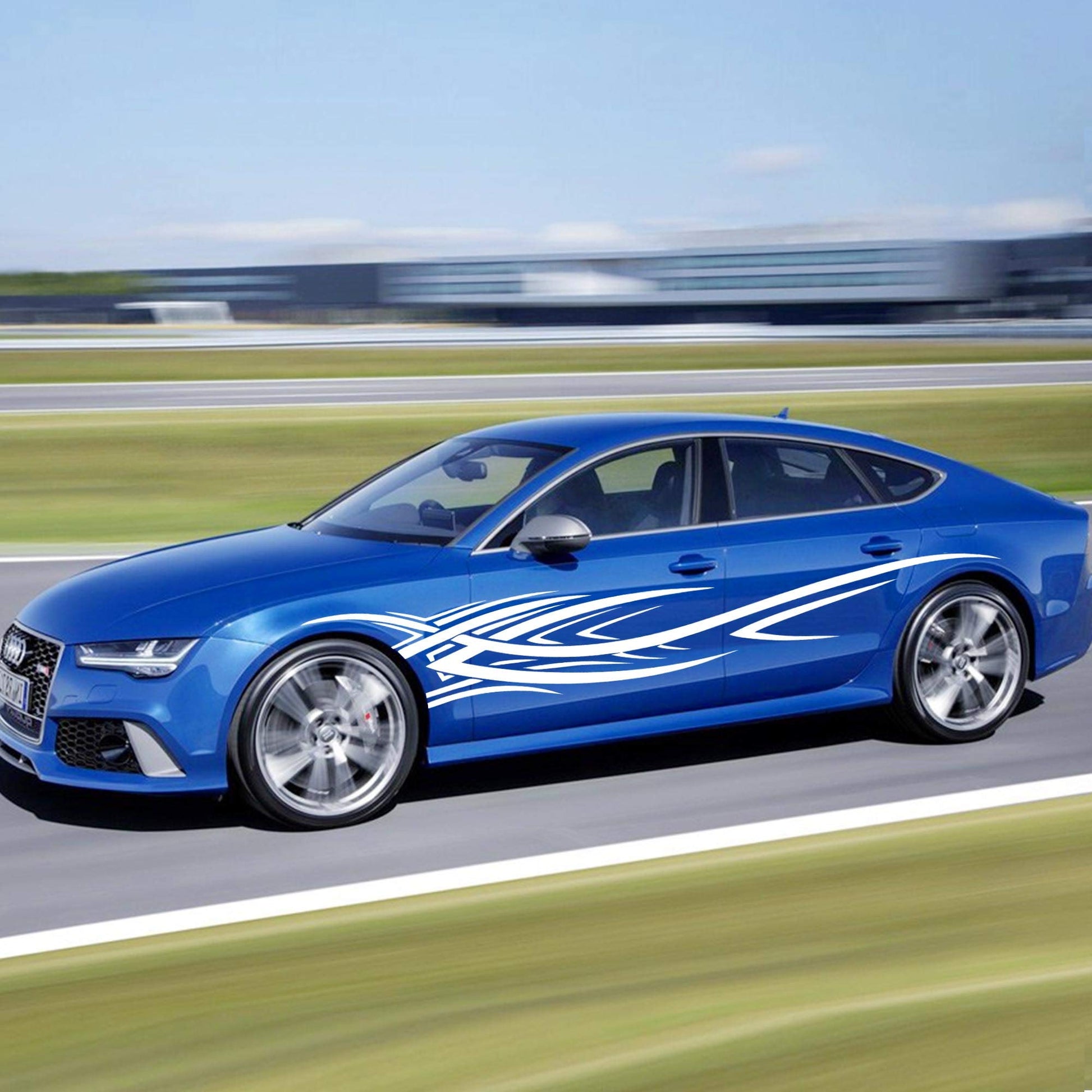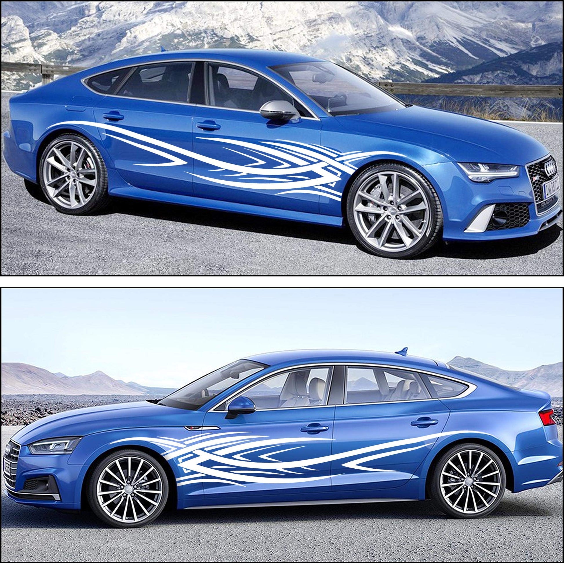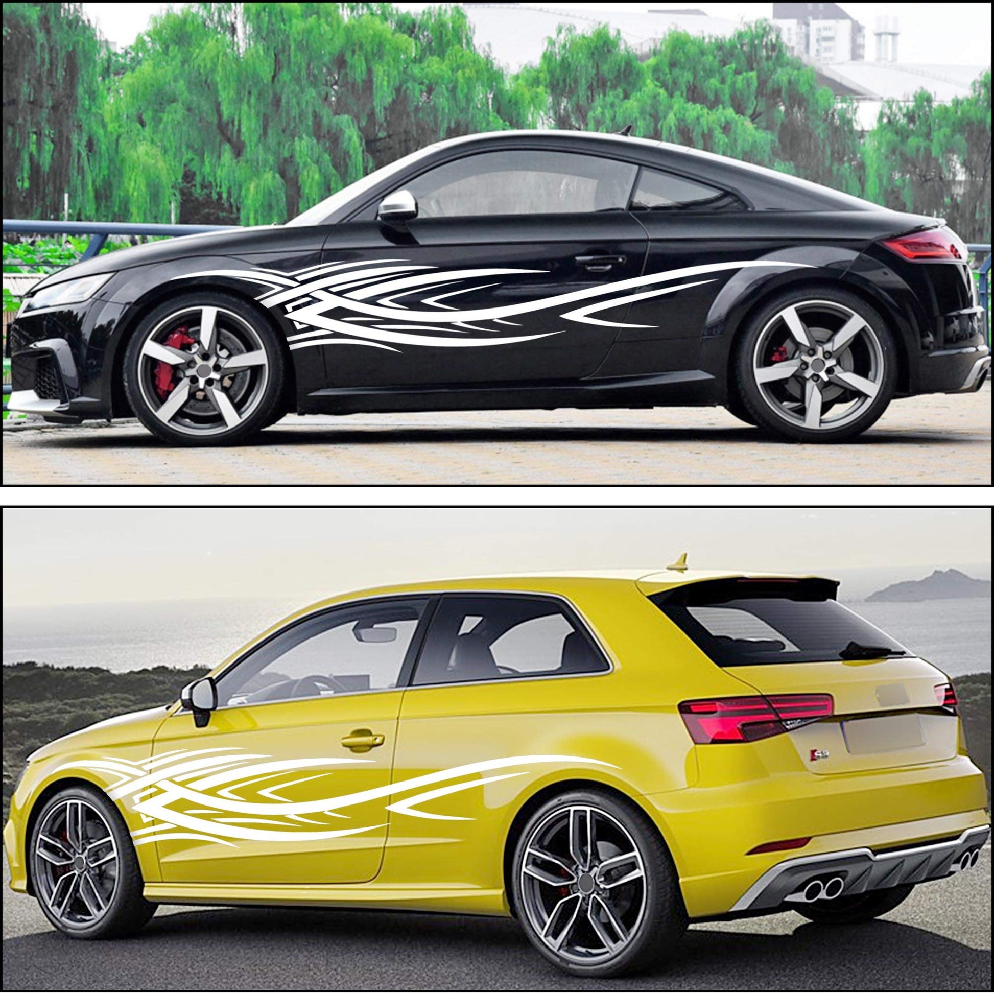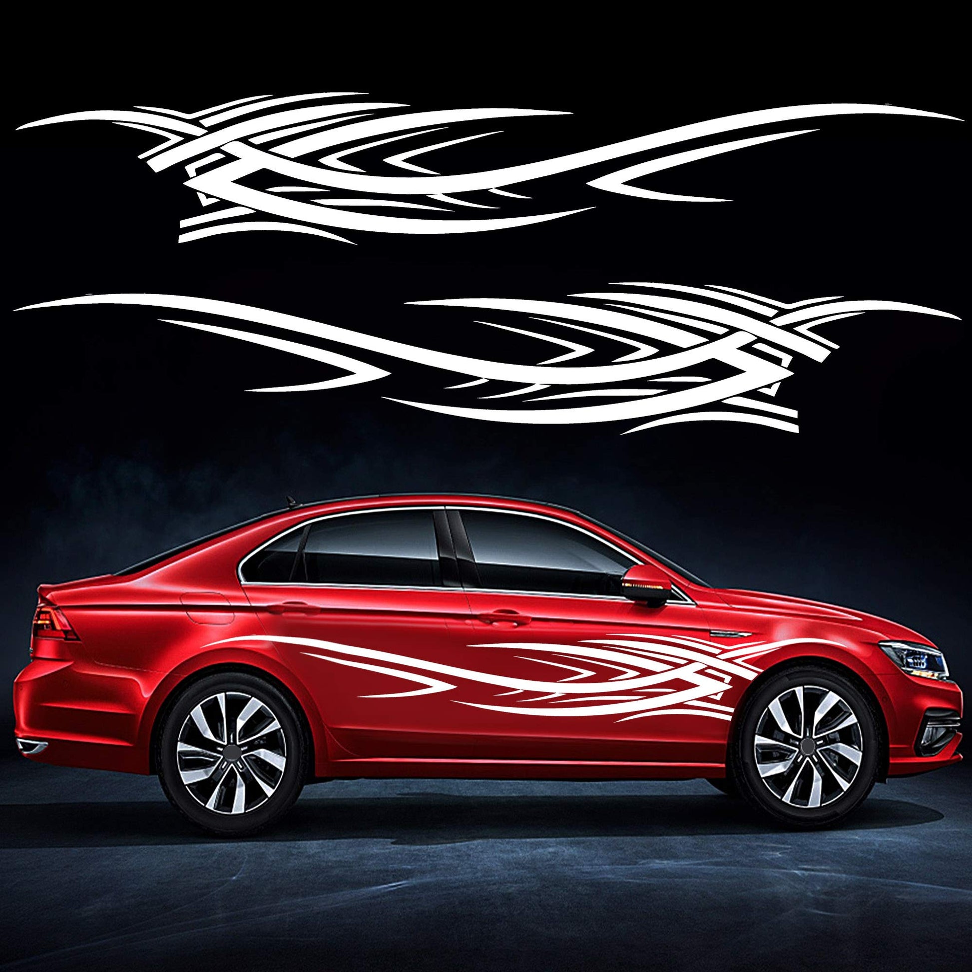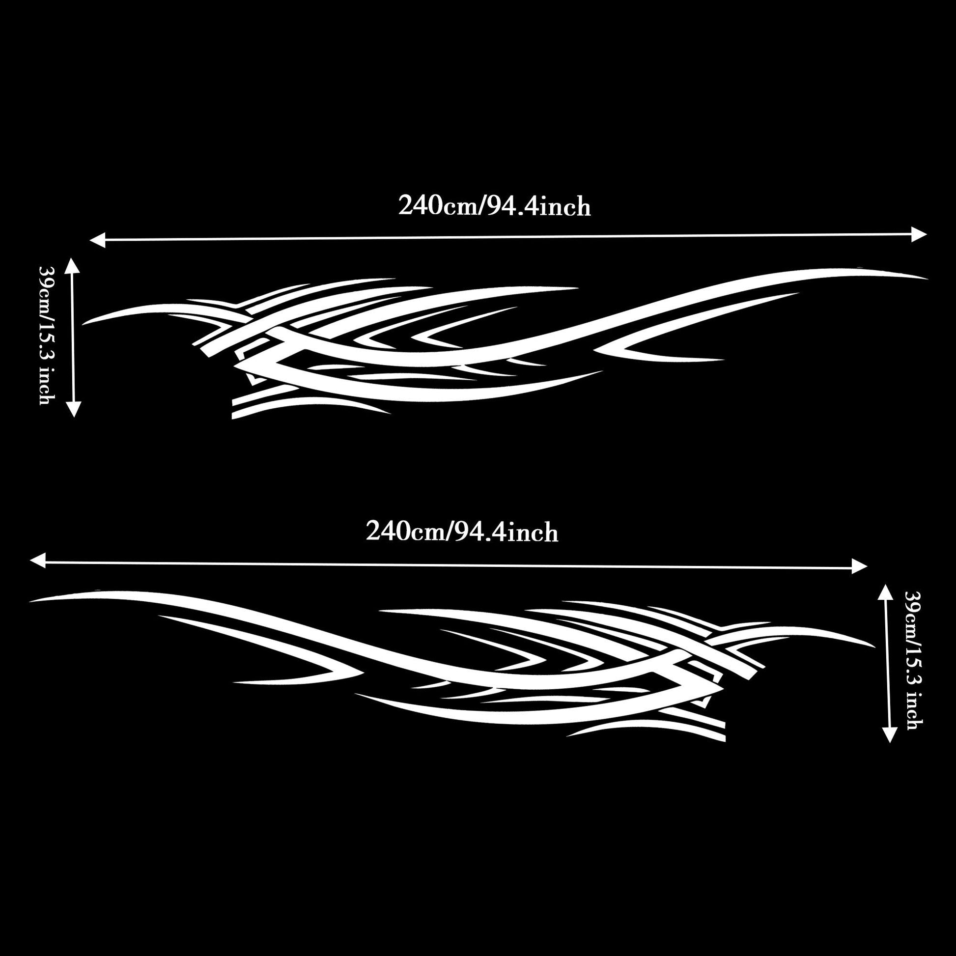 TOMALL 2Pcs 240cm x 39cm Flame Graphics Body Side Sticker Flame Racing Sport Stripes Sticker for Car Universal Vinyl Self-adhesive Decoration Accessories for Truck SUV Off-road Vehicle (white)
