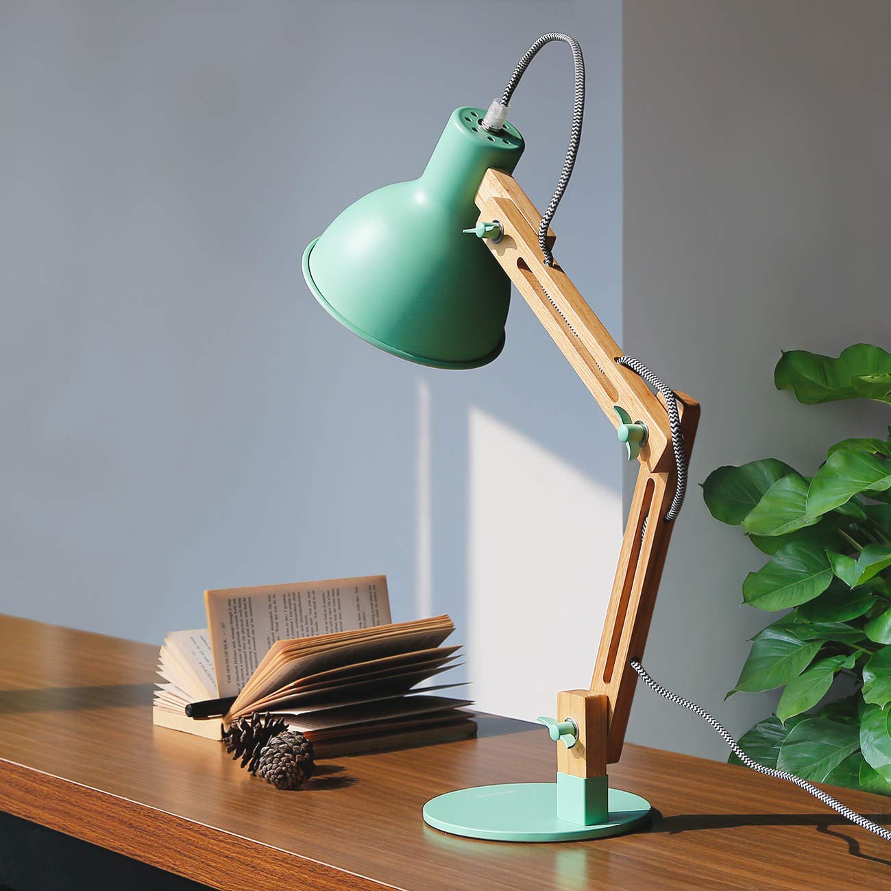 ["【Material dem Sie vertrauen können】: The lamp is mostly made of wood, without any chemical additives. The cable is nylon coated, making it not only sturdy but also very flexible.","【Klassischer Stil】: Classic solid wood meets metal, simple yet elegant.","【Einfache Bedienung und Aufbewahrung】: The lamp is adjustable in many places, allowing you to adjust the height and angle as desired. Of course, you can also completely disassemble the lamp for storage.","【Glühbirne Enthalten】: 110V - 220V with an E27 bulb, screw thread. An E27 LED bulb in warm white is included (3000k/4W).","【Hinweis】: Dear customers, due to the simple and timeless design of the lamp, adjustments can only be made by loosening the wing screws."]