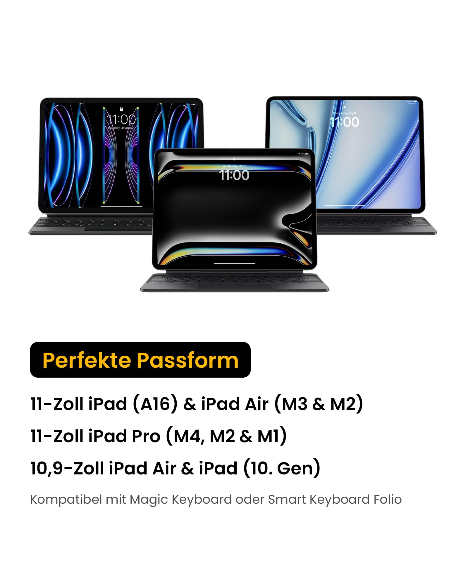 ["Organized Storage: This case features a large tablet pocket for your tablet; an additional front pocket is available for storing any small items, such as charger, cables, hub, iPad Pencil, headphones, etc.","Excellent Protection: The tablet compartment is lined with high-quality, extremely soft padding, ensuring your device is always well protected from bumps and scratches.","Convenient for On-the-Go: Due to its slim design, you can carry the bag effortlessly and transport it in a backpack or suitcase.","Quality meets Performance: Water-resistant and durable surface; durable and reliable YKK zipper; We use recycled fabrics and have consumed hundreds of thousands of discarded plastic bottles to save our planet, as we rely on a human-centered design philosophy; Worry-free warranty for quality issues","Warranty & Compatibility: You will receive a 12-month worry-free warranty. a tablet case fits perfectly: 2025 11 Inch iPad Air M3 | 2025 11 Inch iPad (A16) | 2024 11 Inch iPad Pro M4 OLED | 2024 11 Inch iPad Air M2 | 11 Inch iPad Pro M2&M1 (5/4/3/2/1 Generation) 2022-2018 with Magic Keyboard or Smart Keyboard Folio | 10.9 Inch iPad Air 5/4 | 10.9/10.2 Inch iPad 10/9. Also compatible with other 9-11 Inch tablets: Microsoft Surface Go 3/2/1 | Samsung Galaxy S9/A7/A8/S7/S8 | Lenovo Tab M10, etc."]