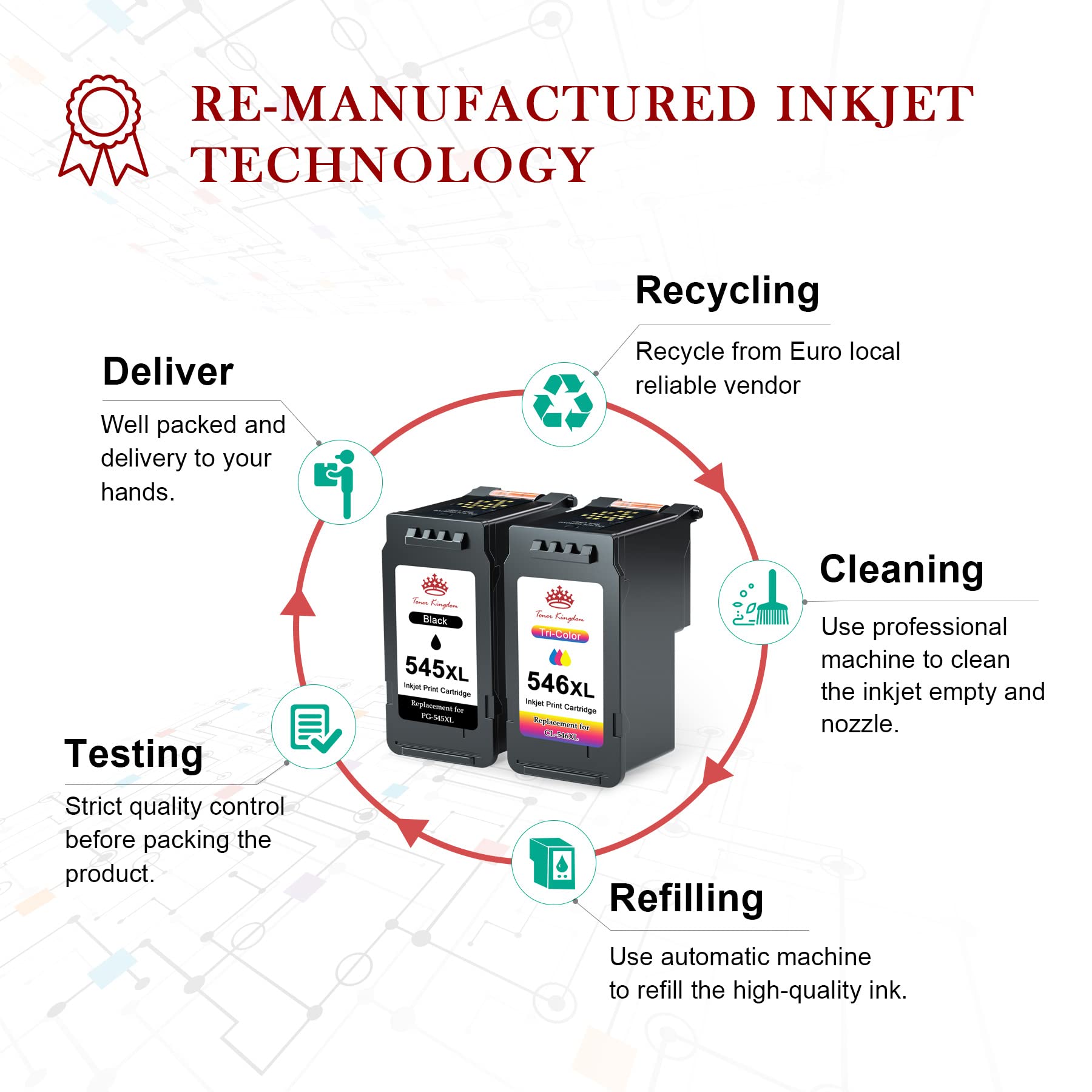 "Benefits: Toner Kingdom compatible 545 546 XL Multipack cartridges have higher print quality than others, resist fading, smudging, and smearing, and provide reliable prints",