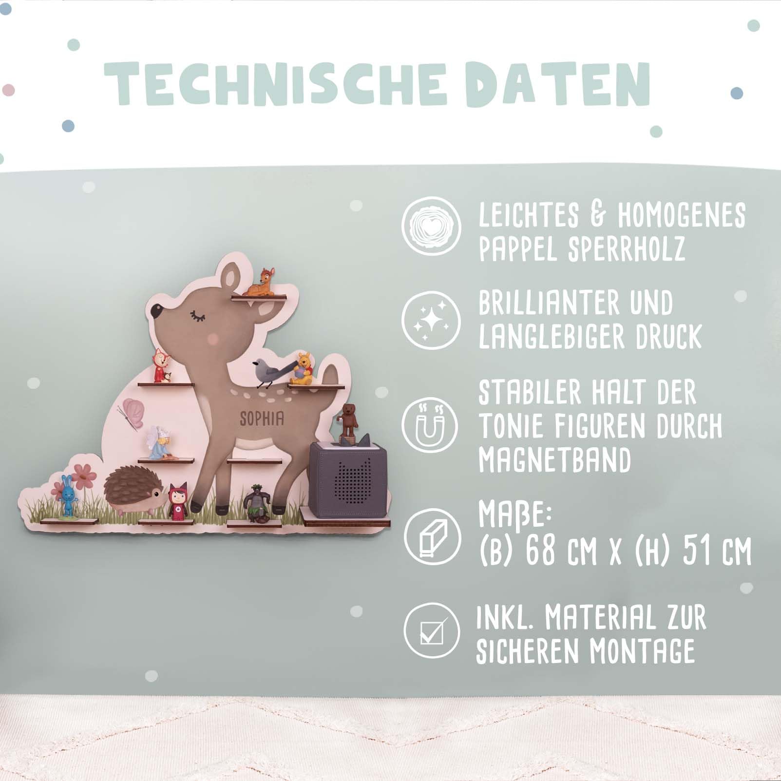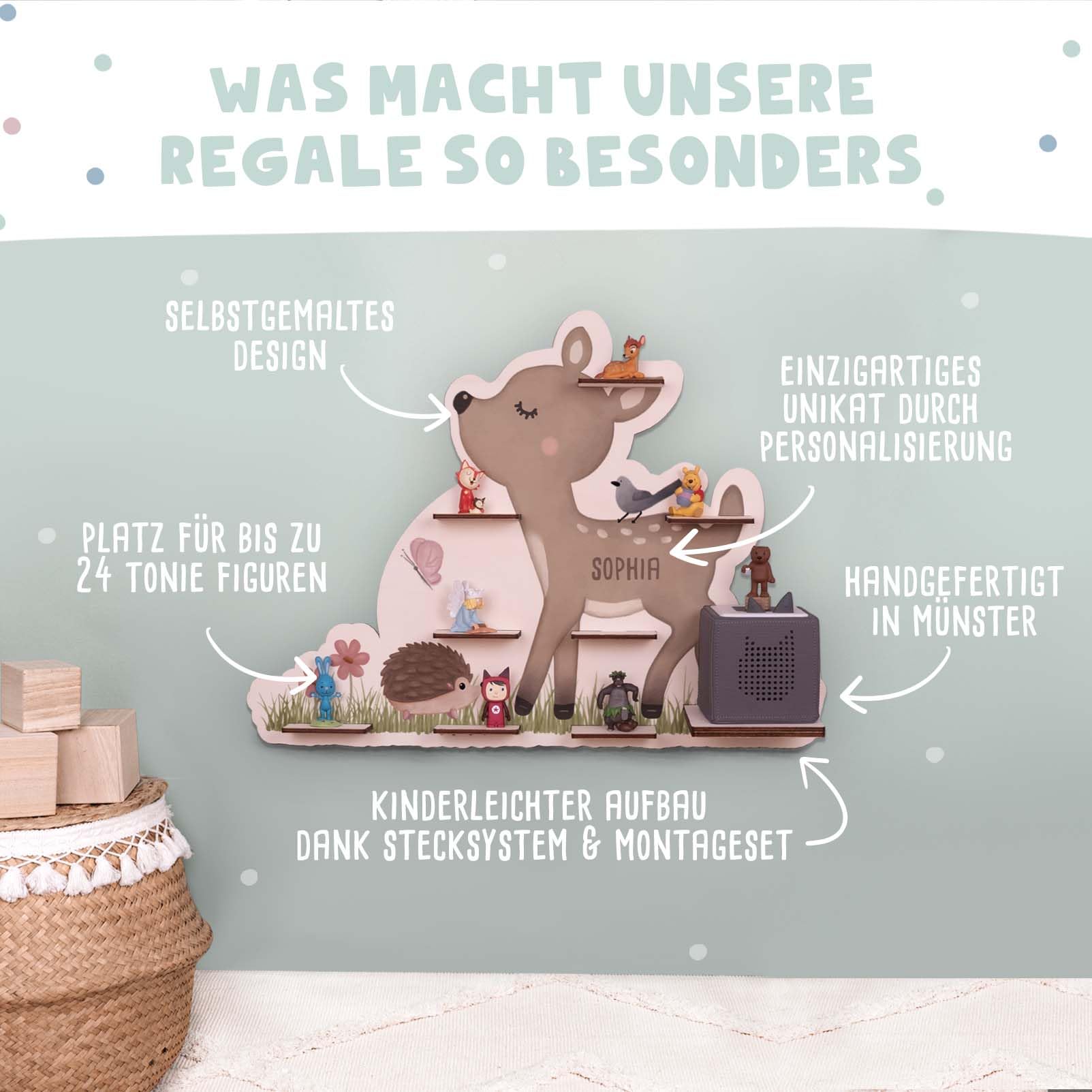 Tonie Shelf Watercolor Animals Personalized - Wooden Tonie Shelf for Girls & Boys - Toniebox Shelf - Children's Shelf for Audio Plays & Storage of Tonie Figures - Nursery Shelf (DEER)