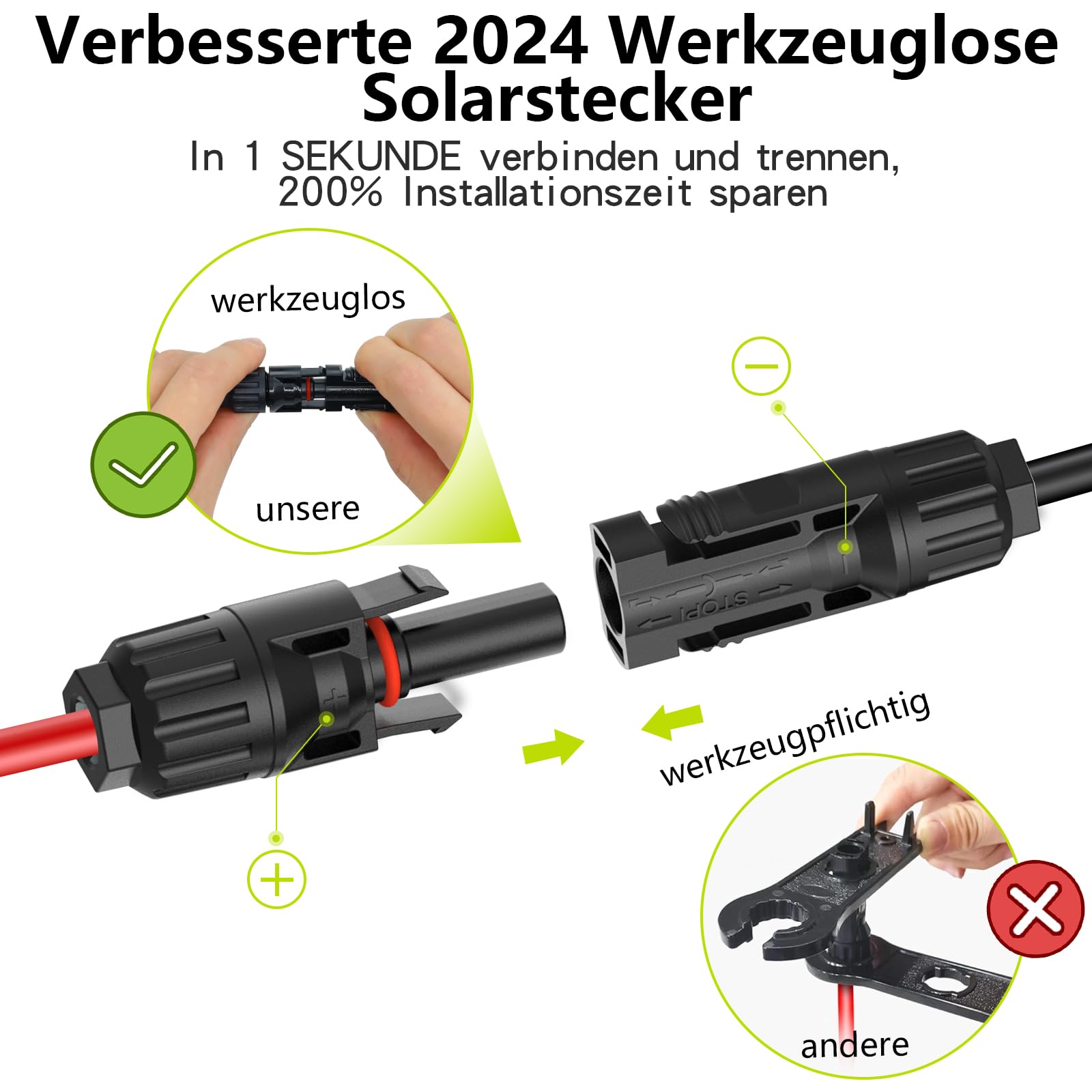 Tool-free solar cable 4mm²/6mm², solar cable extension 1/2/3/5/10m, PV cable (6mm2, 5m)