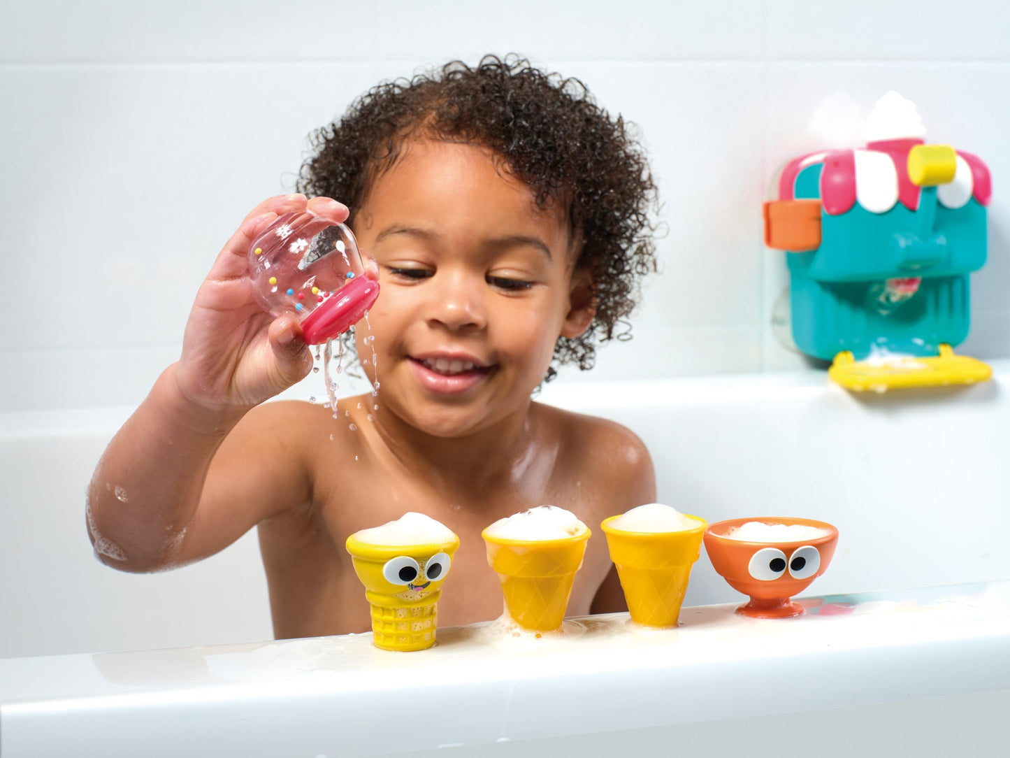 EARLY DEVELOPMENT & ACTIVITY TOY: This colorful ice cream bath toy with easy-to-grip parts promotes fine motor skills. Preparing ice cream for parents or siblings supports sharing, creativity, and early language development.