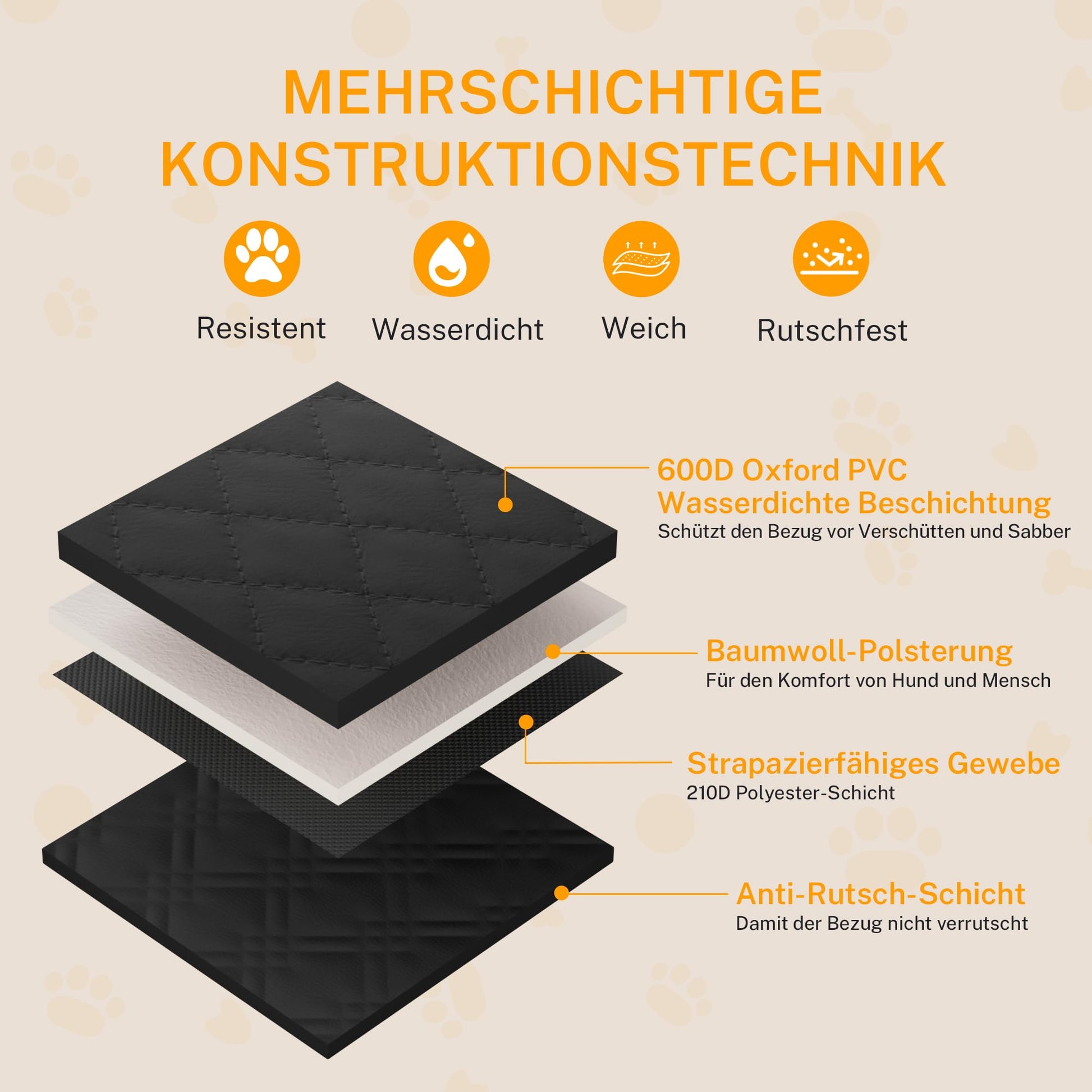 "EXTRA SOFT PADDING - The thick polyester-cotton filling ensures that your dog always lies comfortably and relaxed on short trips and long journeys. Your four-legged friend will enjoy every car ride - no matter where you go!