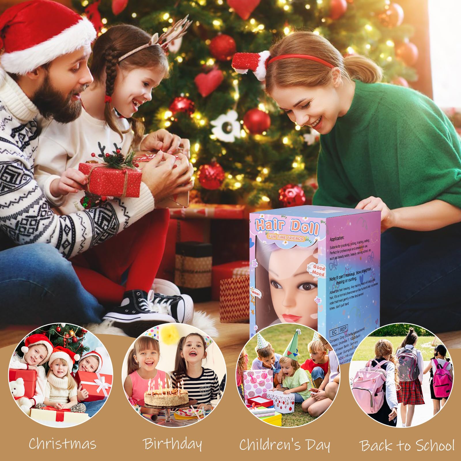 ["🌷【Doll Head for Hairdressing】70% real human hair with a density of 230-260 hairs per cm². You can create the hairstyle according to your preferences to improve your hairdressing skills.","🌷【Hair Length】26 inches/66 cm, from forehead to hair tip at the back, includes a free table clamp stand and a DIY hair braiding kit to meet all your hair styling needs.","🌷【Multi-function】Ideal choice for washing/conditioning, curling/straightening, braiding, and hair styling.⚠️Curling iron temperature should not exceed 120 degrees. Please do not exceed 15 seconds each time.","🌷【Application】Available for hairdressers, stylists, barbers, and beauty trainers, especially suitable for playing with girls to promote their imagination and operational skills.","⚠️【Caution】It is normal for some hairs to shed like our human hair at first, but after repeated use, it decreases. Gently brush the practice head instead of pulling it to prevent hair loss."]