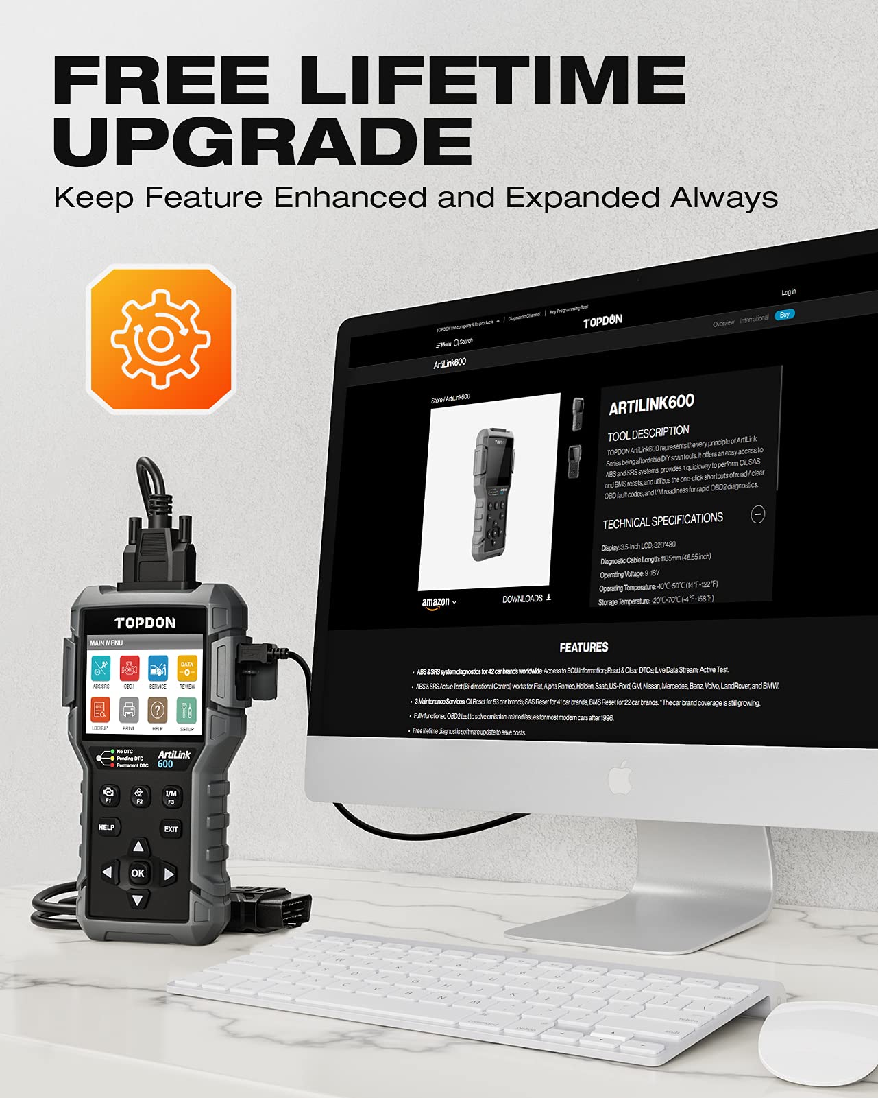 Free software update: This diagnostic tool can be updated for free. Simply connect the device to a computer and install updates through the Topdon website. Scanners with similar functions often require annual subscriptions.