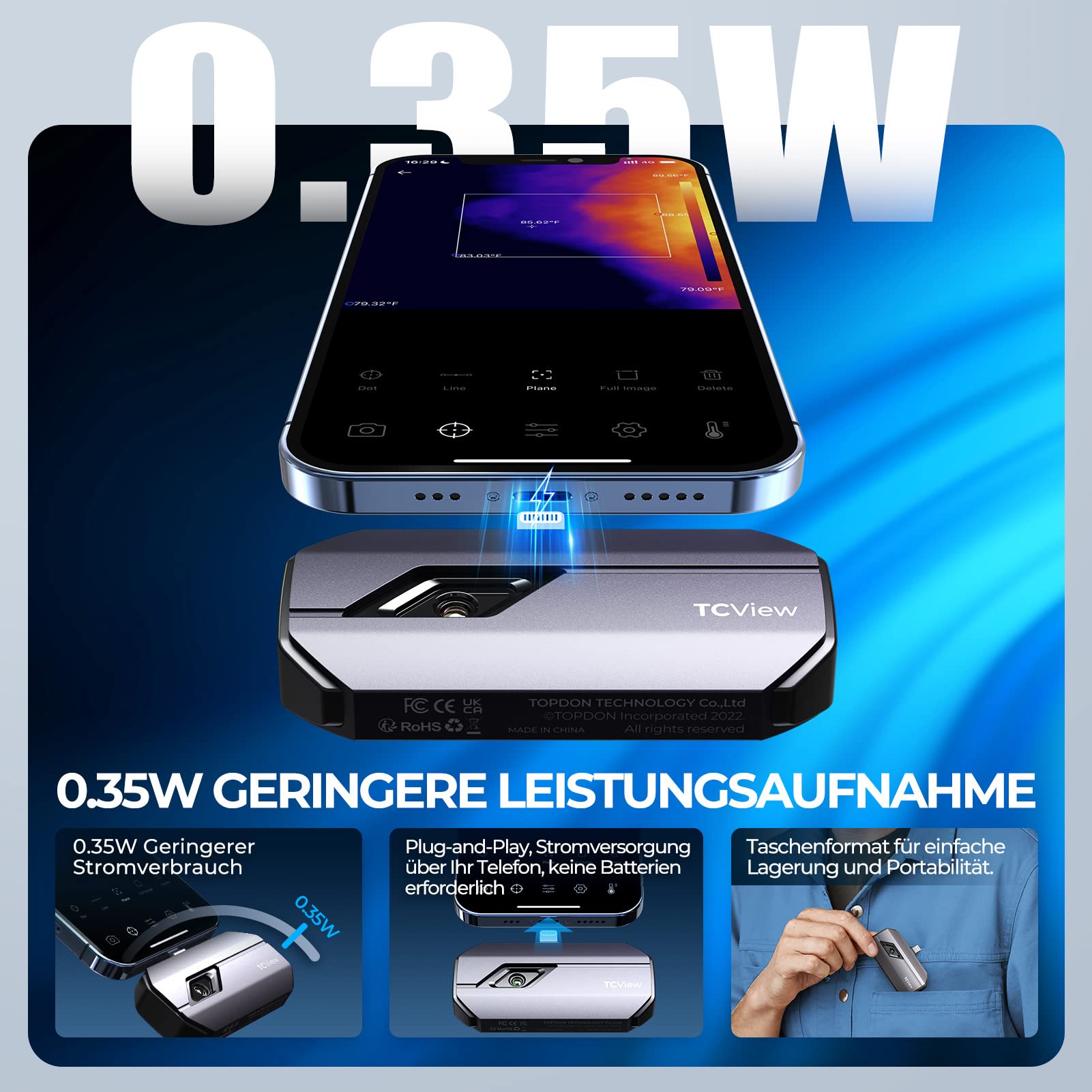 ["Plug-and-Play"] The TC002 is specifically designed for your iOS devices. Simply connect the infrared camera to the input port of your iPhone or iPad (only supports iPads with Lightning interface) and use it anywhere without worrying about battery life. It consumes only 0.35W of power and can be operated for 4-7 hours with a 3000-5000mAh smartphone battery.