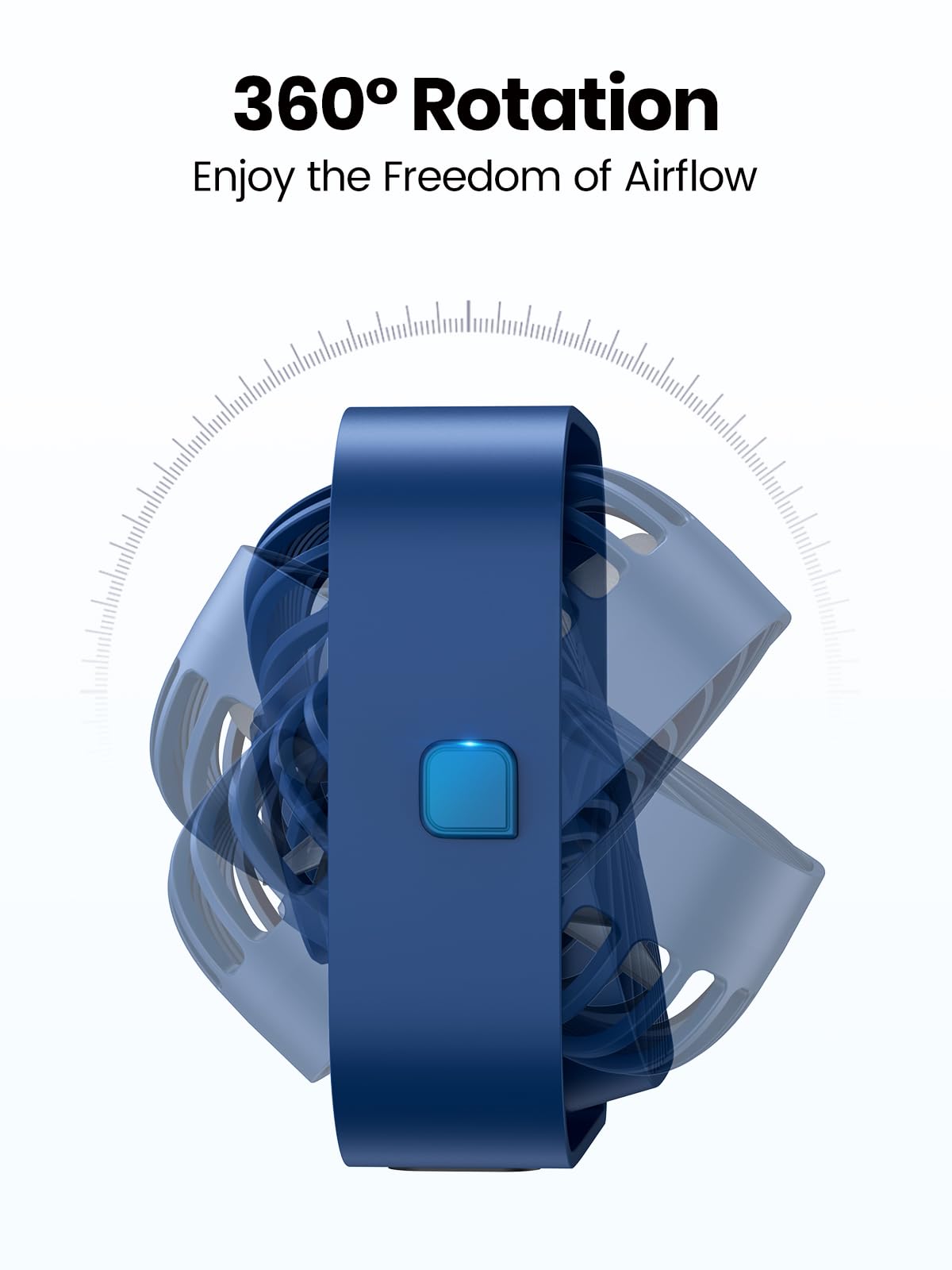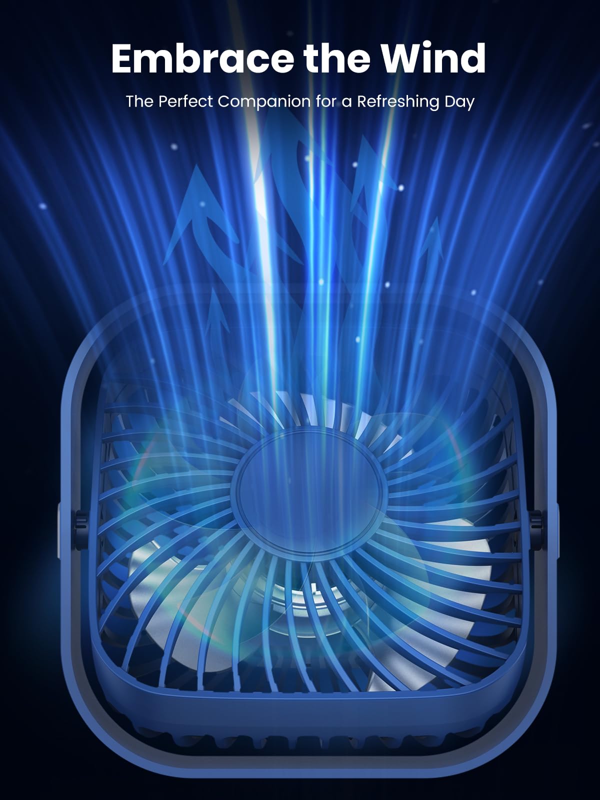 ["Compact Desktop Fan: This fan is powered by USB and has three speed settings, a 360° rotation of the fan head, and can be operated by devices with USB interface such as computers and adapters. By repeatedly pressing the button on the back of the fan, you can choose between low, medium, and high speeds. The first speed offers a velocity of 4 m/s, the second of 5 m/s, and the third of 6 m/s.", "360° Rotation and Stability: The fan head of the electric fan can be rotated vertically by 360 degrees, and you can tilt it to the desired angle to cool down quickly. The desk fan has 2 non-slip rubbers on the bottom to reduce vibrations and increase friction, making it more stable and preventing slippage even at high speeds.", "USB Powered: This portable fan is operated by a 1.2-meter USB cable and is compatible with 5 V output devices. It can be connected to any device with a USB port, such as PCs, laptops, power banks, USB wall chargers (not included), car chargers, and any other USB-enabled power source. (Note: This fan does not contain a battery.)", "Quiet Upgrade Design: The quiet desk fan features 3 curved blades, reducing wind resistance and increasing the available airflow range. At the same time, it is equipped with a powerful, quiet brushless motor to reduce noise. Even at the highest speed, the noise level remains at 40-50 dB.", "Compact Size and Application: With a size of 12 cm, this is a small mini fan measuring 12 x 12 x 5 cm and weighing 160 g, making it lightweight and space-saving. This portable fan is perfect for offices, desktops, dormitories, homes, bedrooms, libraries, camping, traveling, or anywhere you need to cool down. The noise level is lower than 50 decibels, providing you with a quiet pleasure."]