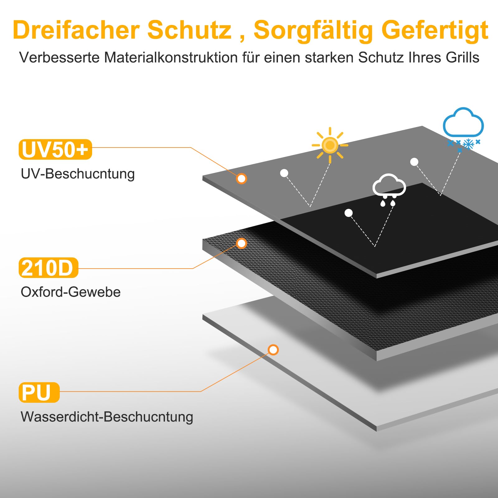 ["Fabric Features"]The entire cover is made of high-quality 210D Oxford fabric and is equipped with three core technologies: water-repellent coating, PU-coated waterproof layer, and UV-resistant coating. This ensures excellent protection for your bike. The fabric weighs only 50 GSM and has an impressive water pressure of up to 3000 mmH2O. We have achieved an excellent balance between waterproofness, durability, and lightness.