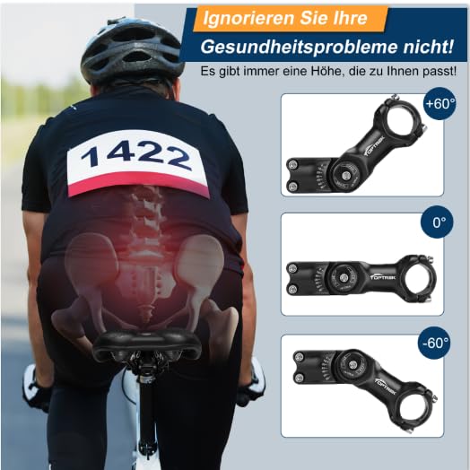 ["Adjustable: Maximum 120 Degrees"] This adjustable stem can be adjusted up to 120 degrees with precise scales, giving you the freedom to find the height of the handlebar you need and easily locate the most comfortable riding position. The flexible height adjustment of the bike stem can effectively relieve back and neck pain caused by hours of riding, making your cycling tour more relaxed and enjoyable.