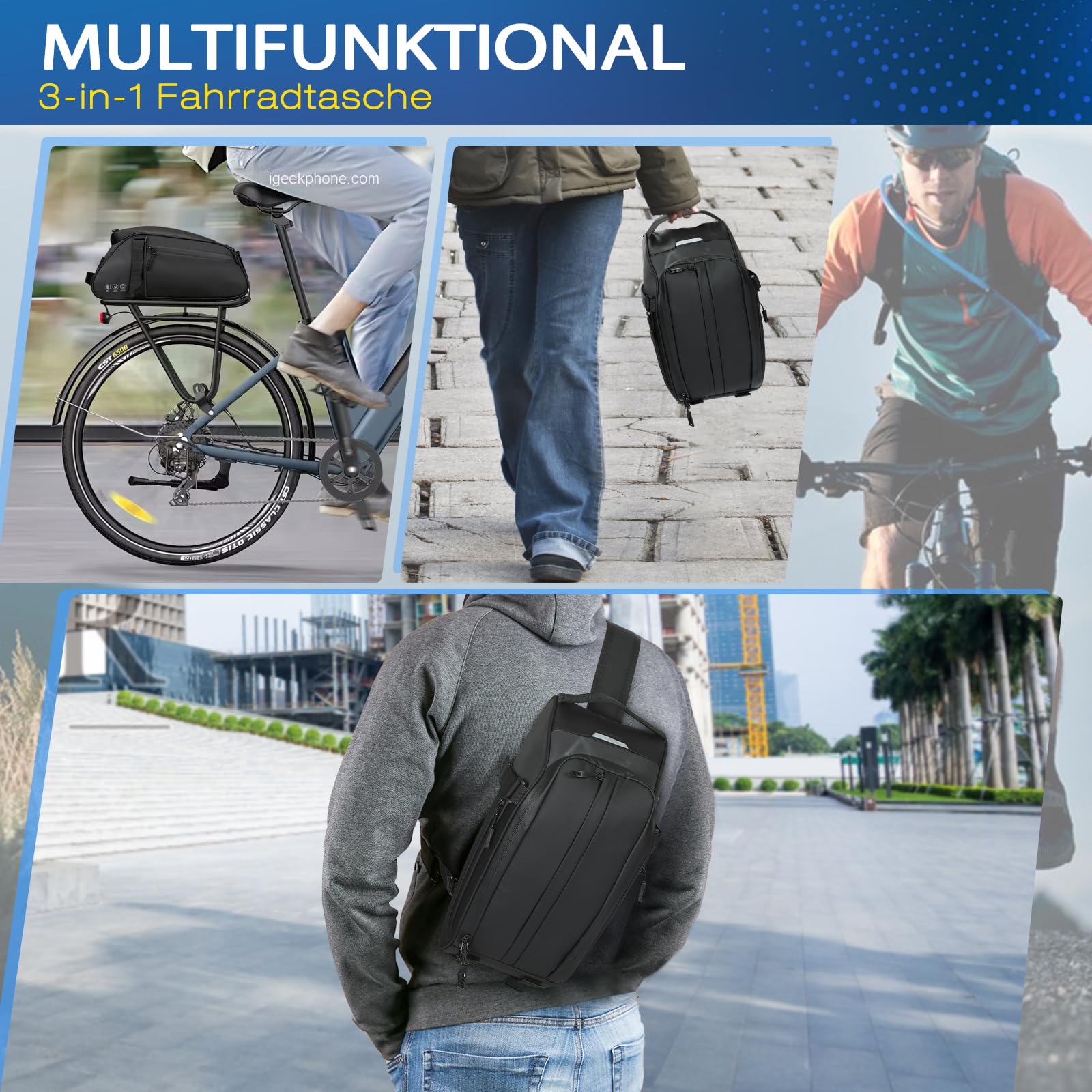 toptrek Carrier Bag 8L volume, bike bags for luggage rack with rain cover, 3-in-1 carrier bags, bike bag luggage rack dimensions 38x16x15 cm (carrier bag- 8L)