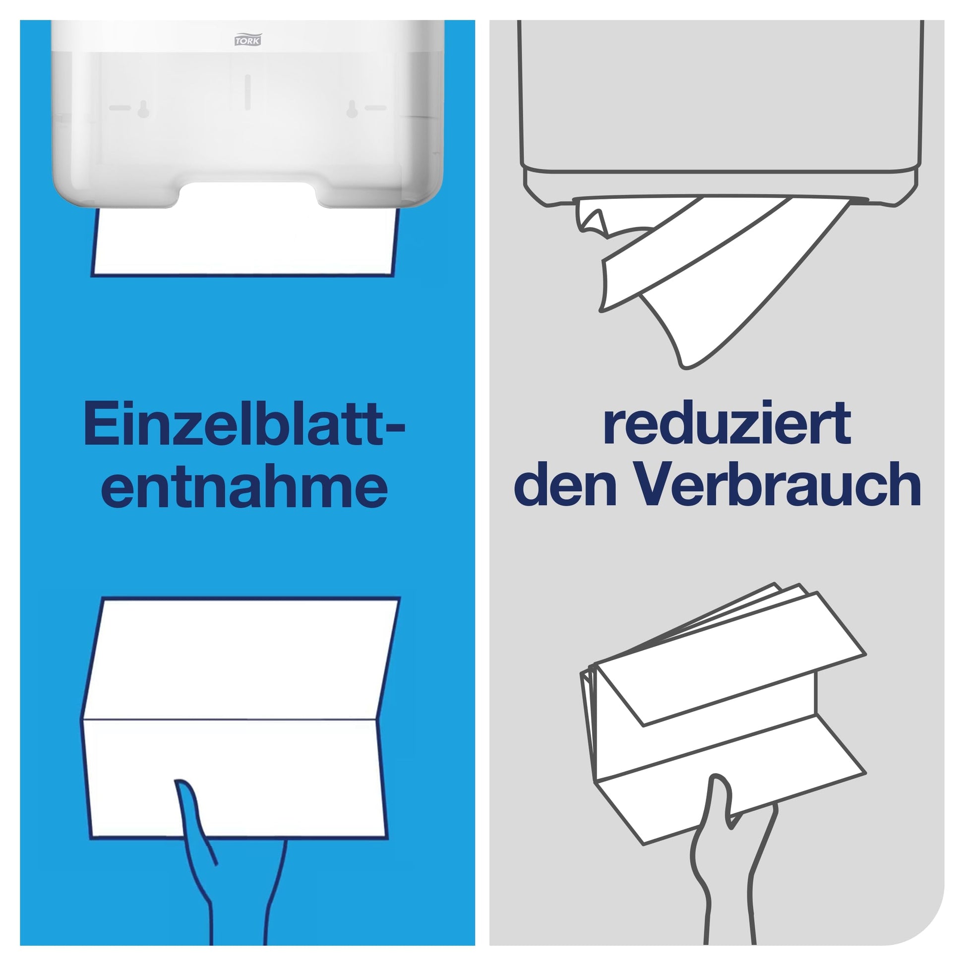 "The foldable towel for extra comfort when drying hands: White, particularly soft paper towels of premium quality with attractive embossing, suitable for the Tork H3 paper towel dispenser system.