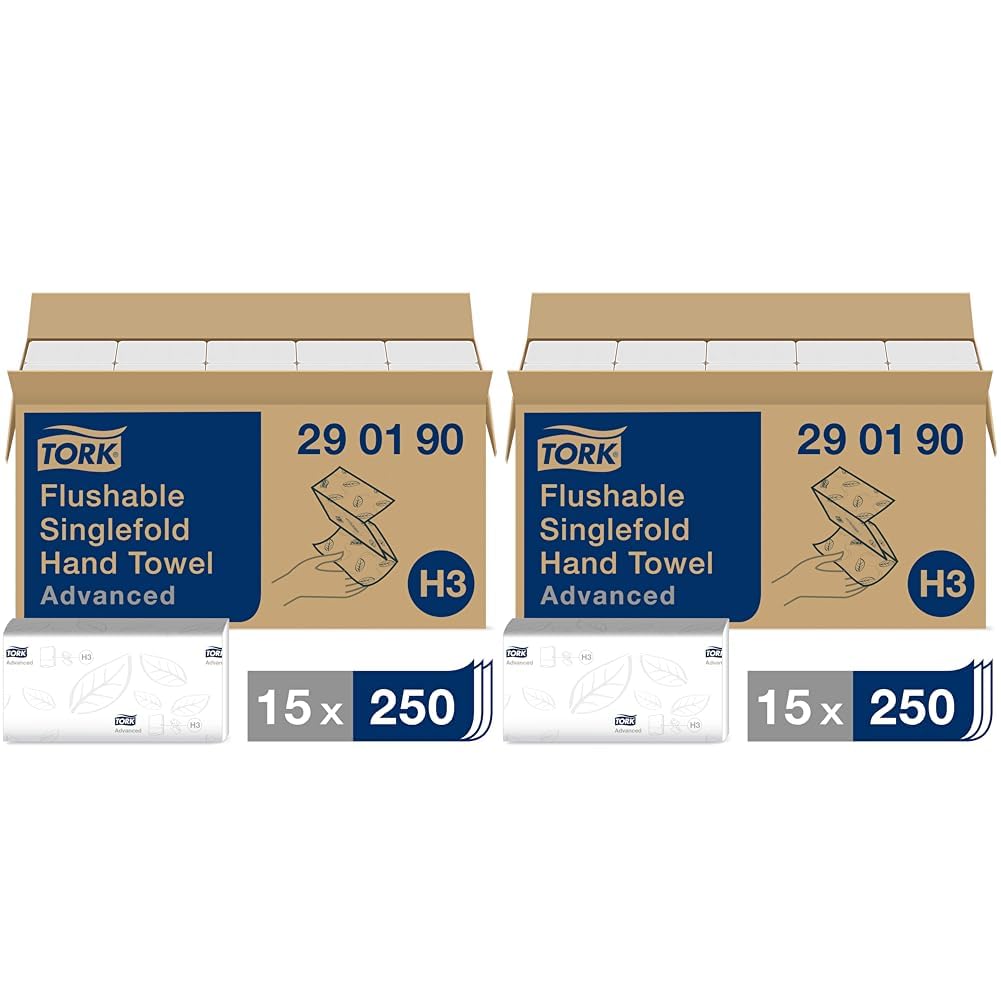 Tork Quick-Drying Zigzag Paper Towels - 0290190 - Interfold Hand Towels for Paper Towel Dispenser, H3 Advanced - 2-ply, white - Large pack of 15 x 250 sheets (Pack of 2)
