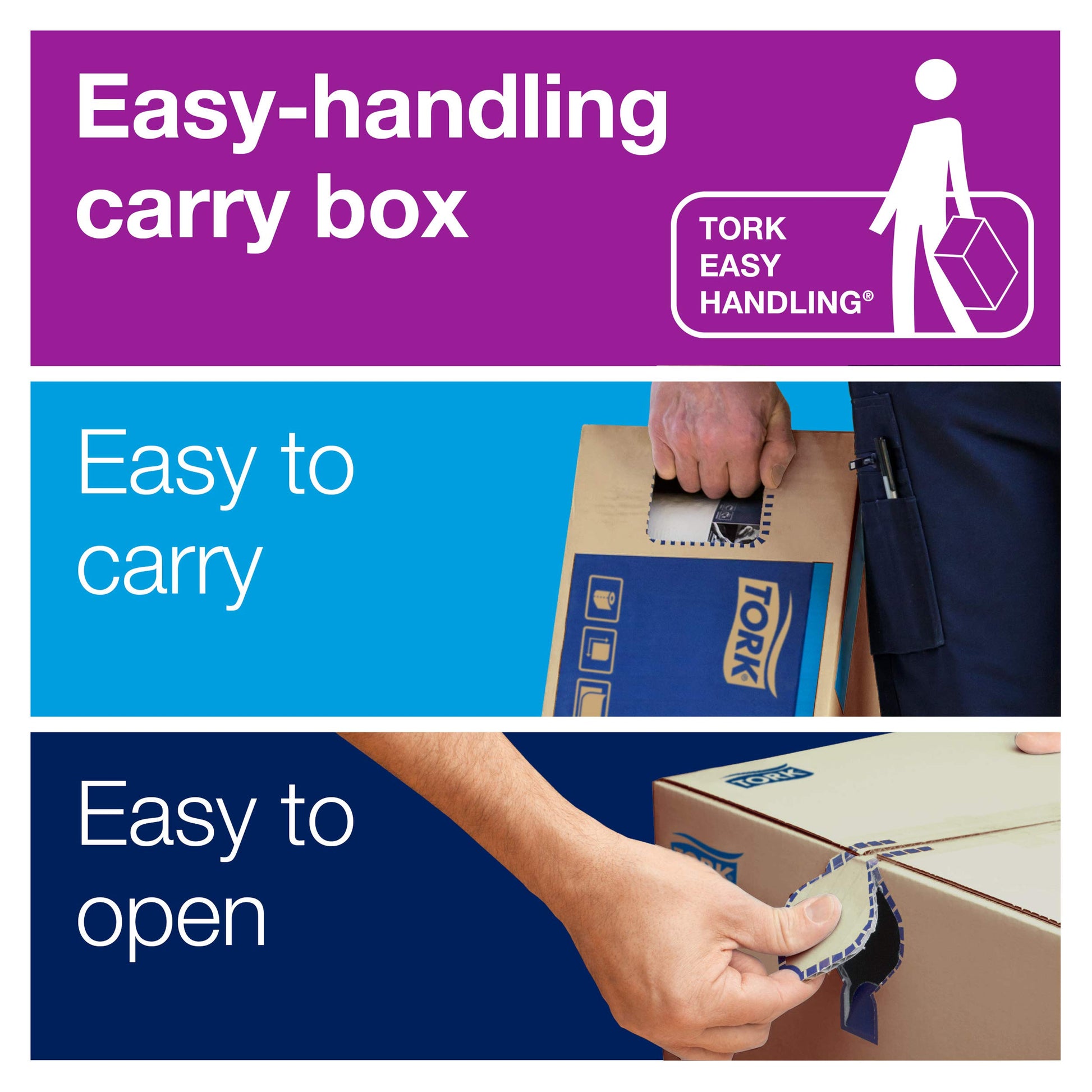 The ISEGA certification confirms suitability for short-term contact with food - with Tork Easy Handling: easy-to-open packaging, easy to fold, easy to transport.