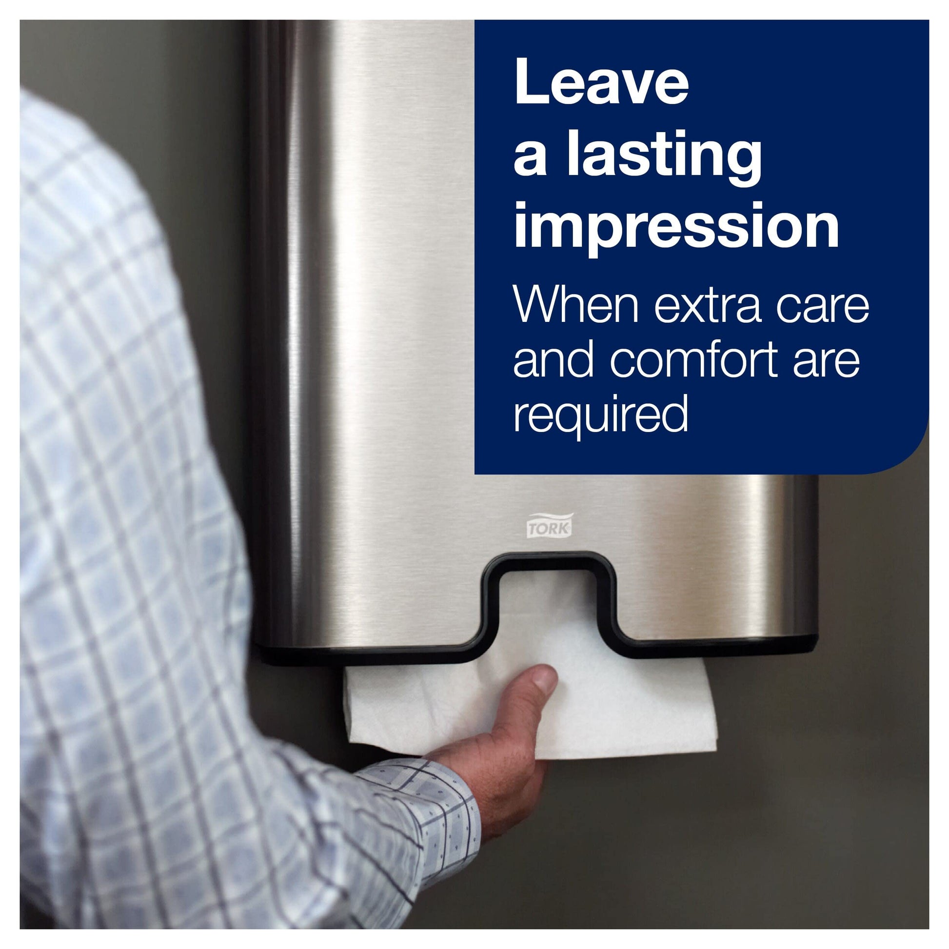 Less consumption, better hygiene: The paper towels, folded multiple times in Z-fold, are taken out individually - ideal for washrooms with medium visitor frequency when combined with the Tork Xpress dispenser.