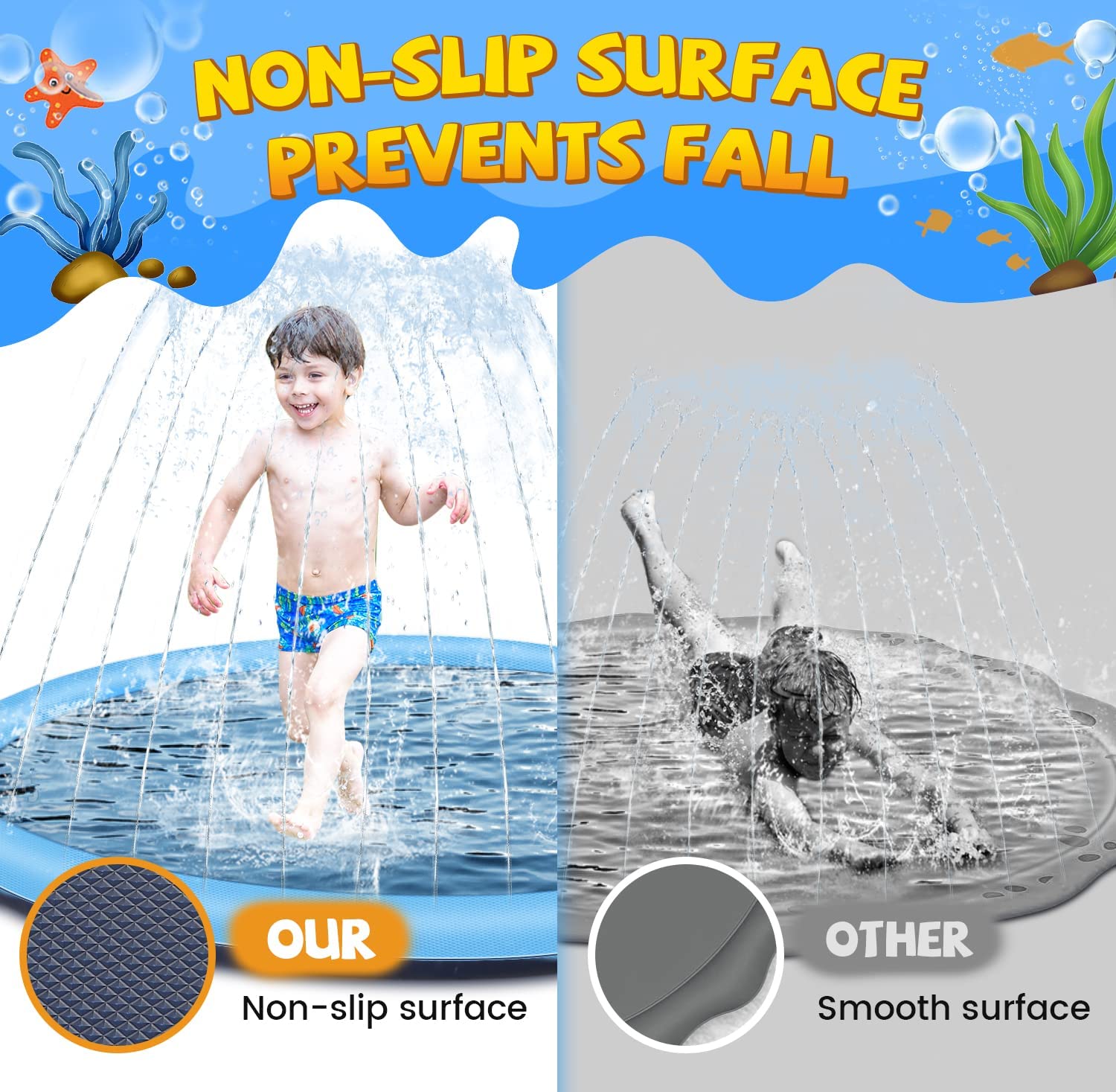 Tosekry Water Toys Kids Outdoor Games, 170CM Water Sprinkler Kids Splash Pad, Garden Toy Kids Sprinkler and Dog Pool with Anti-Slip Function (blue-170cm)