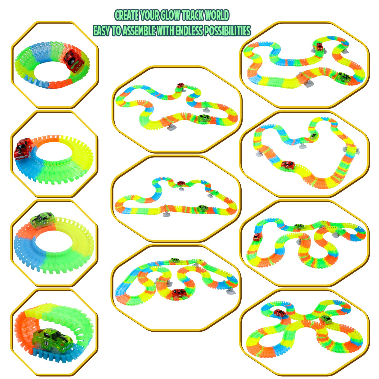 Toys for 3 years old. Race track for kids with 240 pieces. Glow tracks for cars. Great gift for girls and boys aged 3-6.