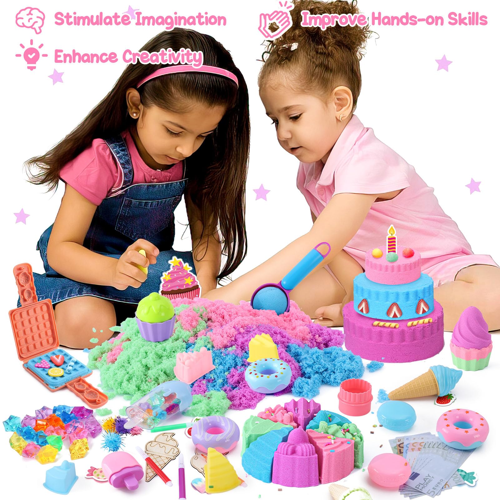 Ideal Gift for Kids - Our Dessert Magic Sand Set is the perfect gift for girls ages 3-9. These sandbox toys can provide hours of fun for children and keep them engaged in learning and creating. Perfect for birthday gifts, Christmas gifts, Easter gifts, Halloween gifts, back-to-school gifts, and more. Great toys for girls ages 3-8."