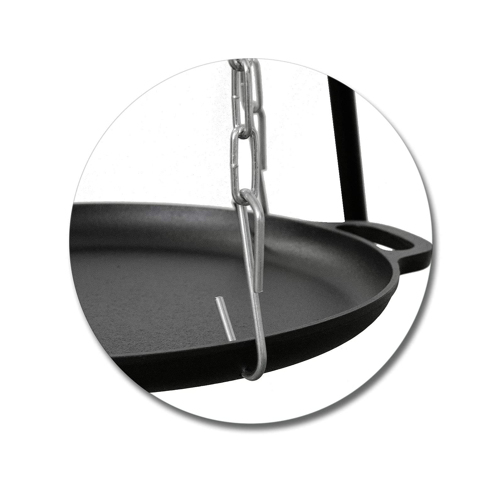"Umfangreiches BBQ-Set: 7-teilig, mit traditionellem Feuertopf 6QT (ca. 7,5 Liter), Deckelheber, Dreibein inkl. Ketten & Haken, Grillpfanne (ca. Ø35 cm), Grillrost (ca. Ø 40 cm), Untersetzer (ca. Ø35 cm, 15 cm hoch) und dekorative Holzkiste zum Aufbewahren und Verschenken. Traditioneller Schmortopf auf drei Füßen, mit robustem Deckel der ebenfalls drei Füße hat und somit auch als Grillpfanne im Feuer verwendet werden kann. Topf und Deckel haben eine Thermometerdurchführung zur Überwachung der Kerntemperatur. Besonders dickwandiges Material, das die Hitze lange speichert und konstant Hitze abgibt, was ein gleichmäßiges Garen beim Rösten, Grillen über Glut oder Feuer ermöglicht. Vielseitige Einsatzmöglichkeiten: feuerfester Kessel geeignet zum Schmoren und Köcheln von Suppen, Eintöpfen, Gulasch, für Braten oder Schichtfleisch, sowie zum Backen von Brot uvm. Zum Garen mit Oberhitze können heiße Briketts oder glühende Kohlen auf den Deckel aufgelegt werden. Mobil und flexibel einsetzbar, ideal für Camping. Langlebiges Dutch Oven Set mit Pre-Seasoned Finish für einen konstanten Antihaft-Effekt, ohne zusätzliche Beschichtung. Vor der ersten Nutzung wird ein nochmaliges Einbrennen empfohlen (Anleitung im Lieferumfang enthalten). Besonderes Geschenk-Set für Koch- und Grillfans."
