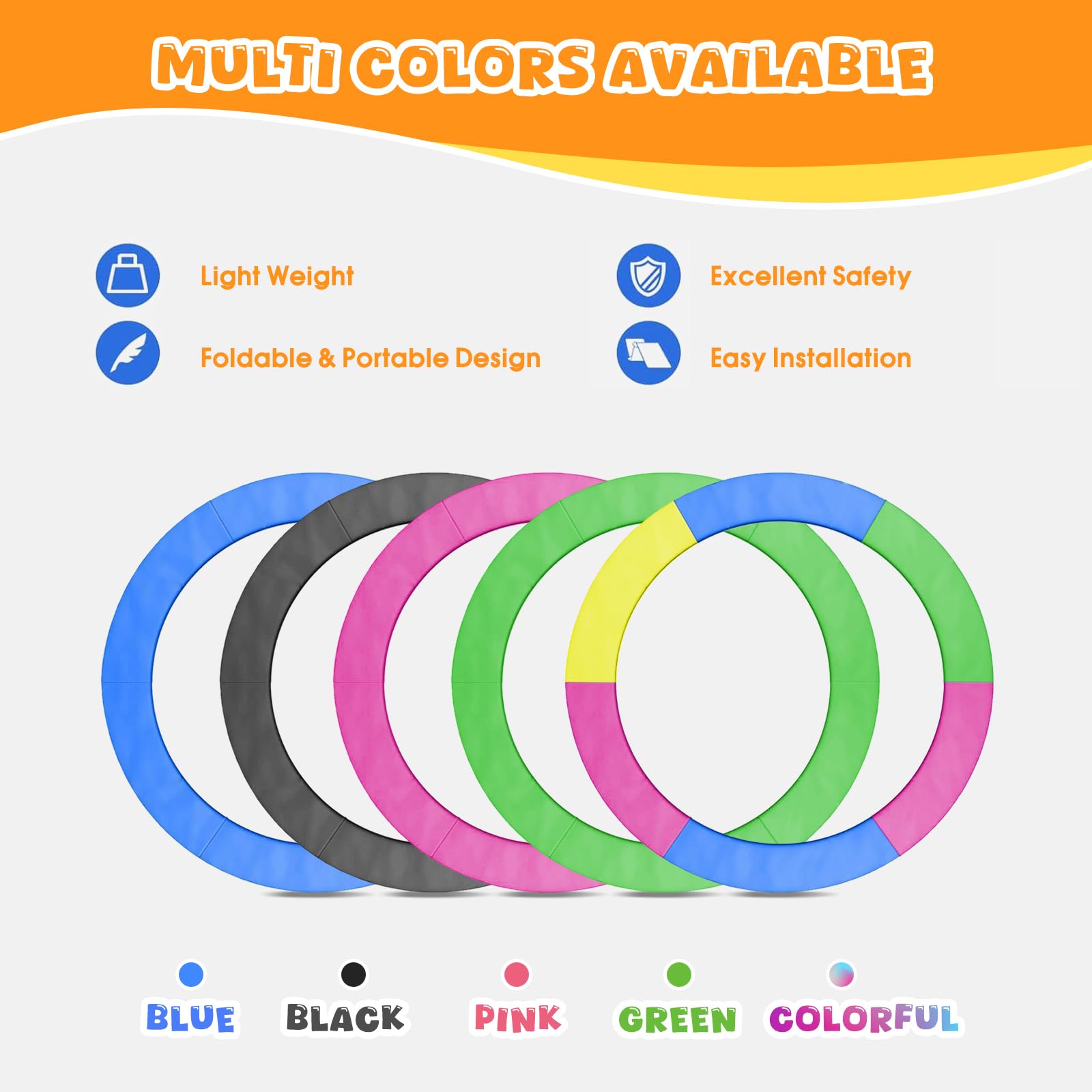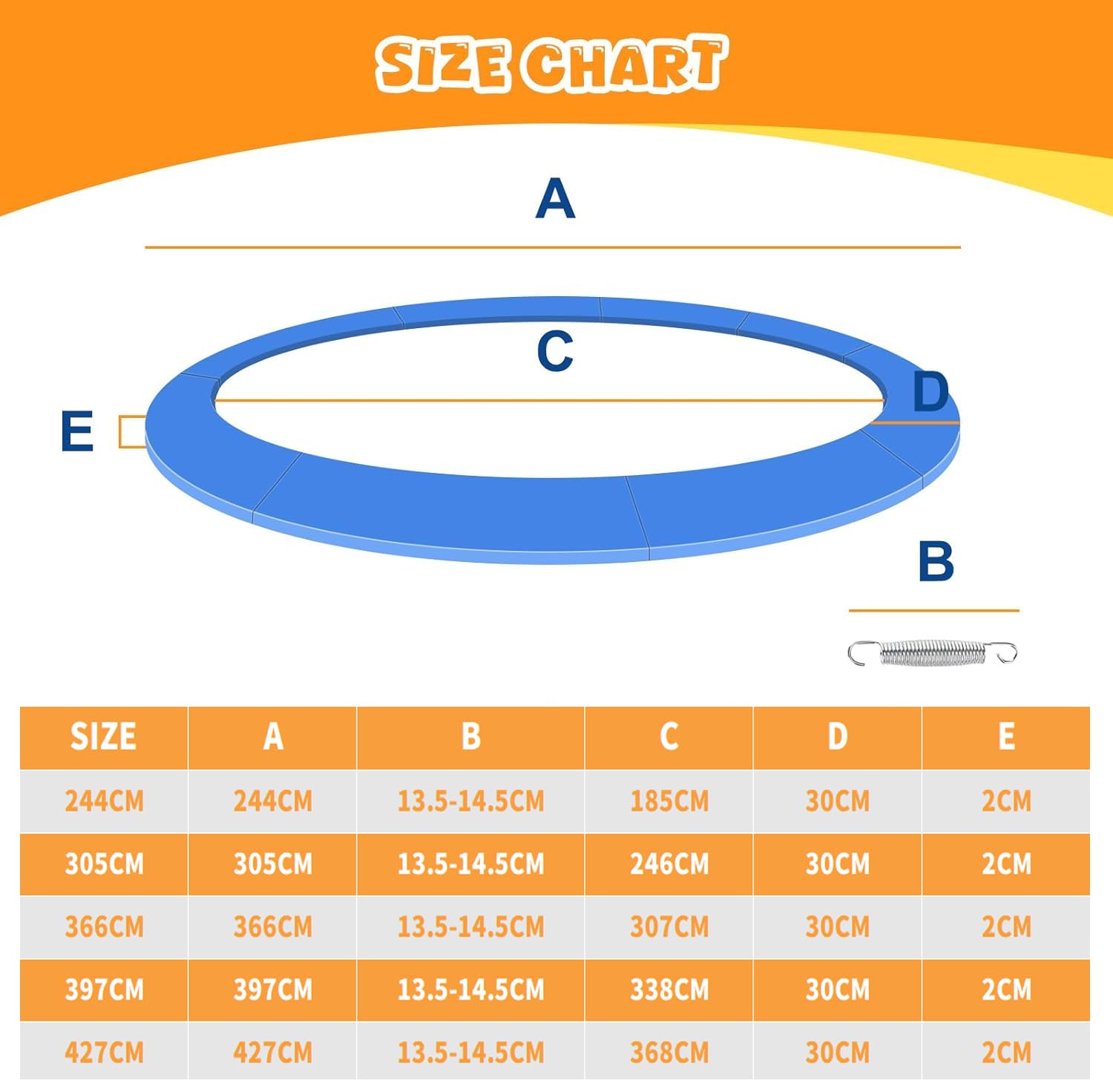 【UV-resistant & weatherproof trampoline surround 10 ft for year-round outdoor use】 With over 2000 hours of UV testing, this trampoline edge protection 10 ft protects against harmful sun exposure and is water resistant. The double-reinforced elastic straps secure the trampoline surround 10 ft tightly to the frame, preventing slippage during jumping. Perfect as weatherproof trampoline replacement parts and accessories for garden, school, or recreation center - durable, colorfast, and reliable.