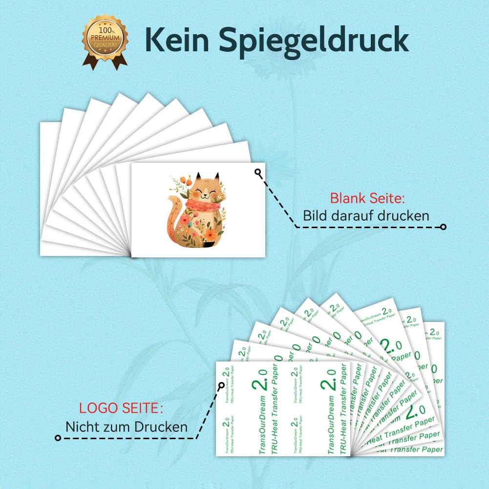 TransOurDream 40 sheets A4+4 A3 silicone paper, REAL inkjet/laser transfer film, transfer paper, textile film for inkjet printers, laser printers, printable iron-on film for light T-shirts, transfer paper