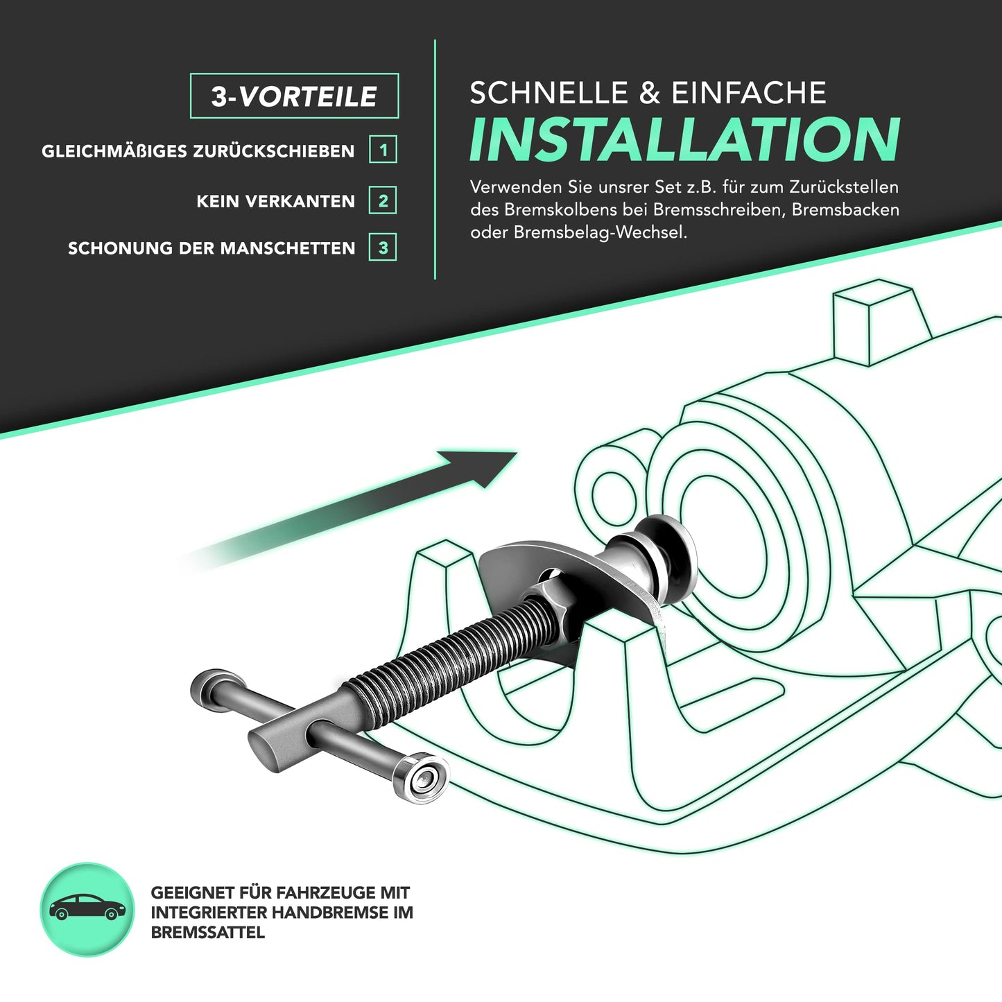 WELL-DESIGNED CONSTRUCTION: The clever design allows for even retraction without jamming, while also protecting the seals. This brake piston tool is especially necessary for vehicles with an integrated handbrake in the caliper.