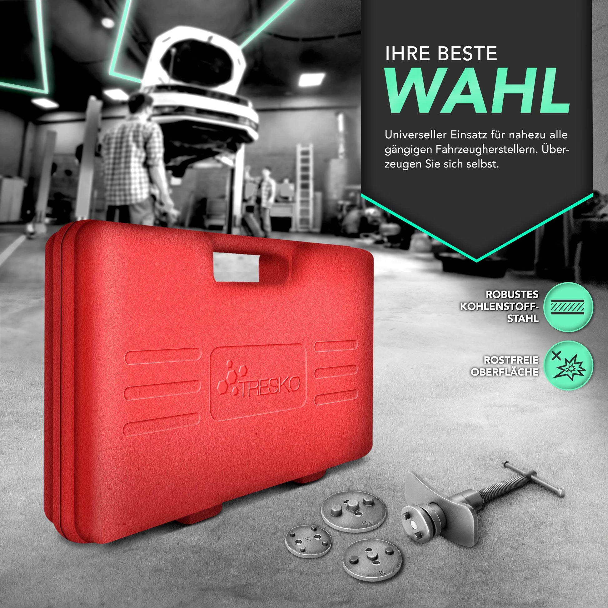 FOR EVERY NEED: The TRESKO brake caliper piston tool is necessary for retracting the brake caliper piston when changing brake discs, brake shoes, or brake pads."