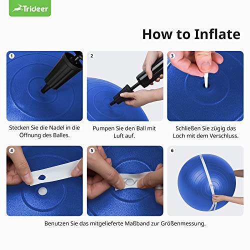 Trideer Thick Exercise Ball, Anti-Burst Pilates Ball, 45-85 cm yoga ball for balance, yoga as fitness equipment and balance chair in gym-home-office (L (58-65cm), ocean blue)