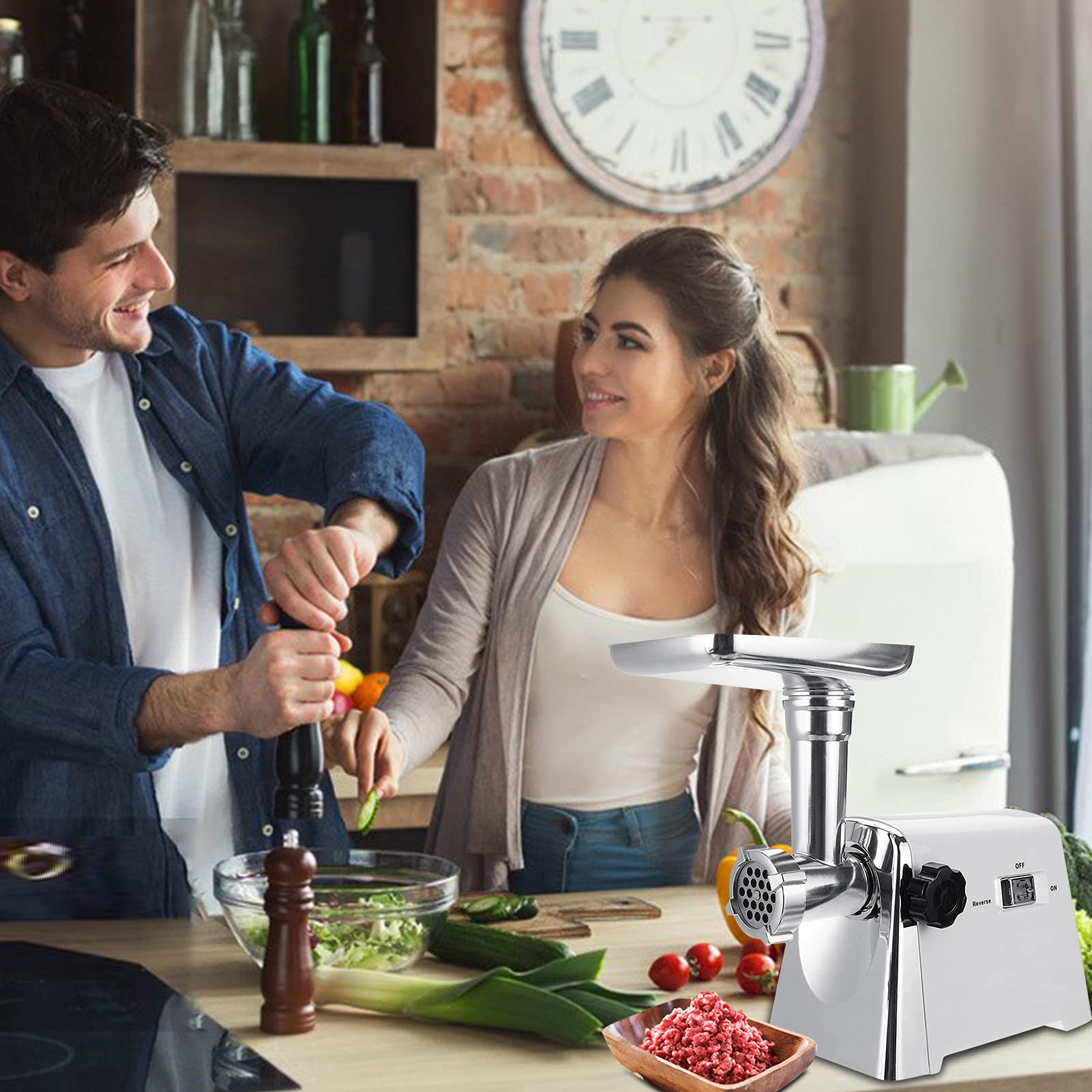 "Durable Material: The stainless steel electric meat grinder is made of high-quality stainless steel and ABS, which is corrosion-resistant and durable, perfect for both private and commercial use.